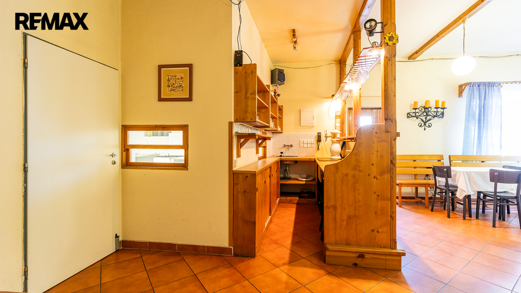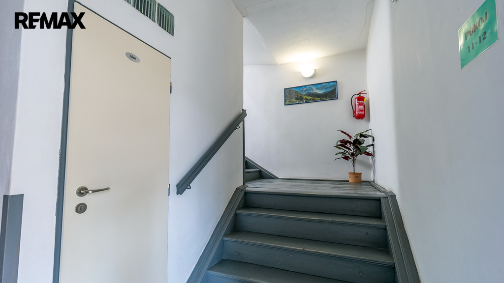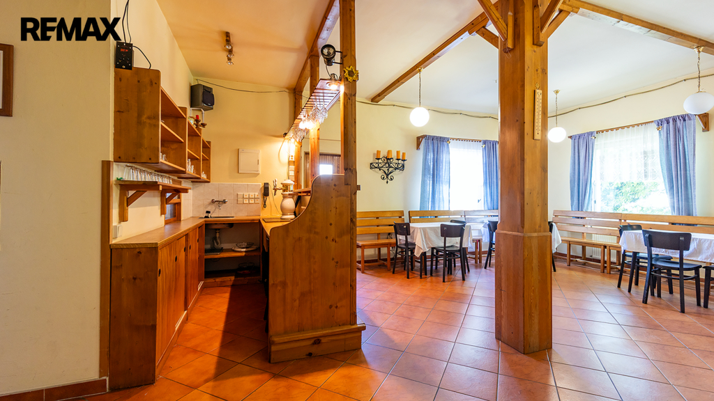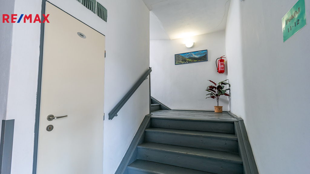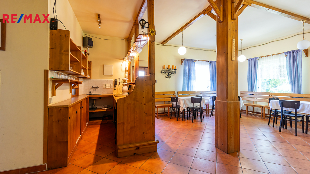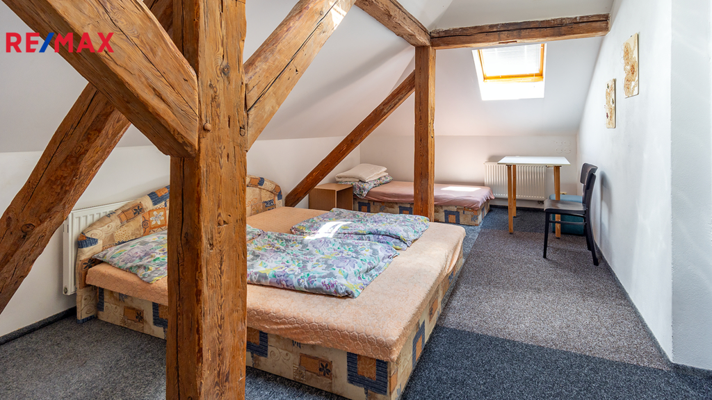 Zděná budova má 2 podlaží plus podkroví a je v relativně dobrém technickém stavu s průběžnou údržbou. Interiér tvoří několik samostatných apartmánů a pokojů, některé s vlastním sociálním zázemím, které doplňují společné prostory s kuchyní, menší restaurací a hygienickým zázemím pro hosty. V podkroví je potom samostatný velký byt. Objekt je připraven k okamžitému provozu bez nutnosti větších investic, případně lze uvažovat o jeho modernizaci pro konkrétní účely. K dispozici je také menší zahrada s posezením, zpevněné plochy pro parkování a prostorná technická místnost pro údržbu či skladování. Ubytovací kapacita je vhodná jak pro skupiny, rodiny i jednotlivé turisty. Stav objektu je udržovaný, ovšem počítá se s tím, že nový majitel bude chtít objekt přizpůsobit svému záměru.