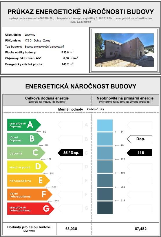 - Energetický ukazatel podle vyhlášky: č. 78/2013 Sb.