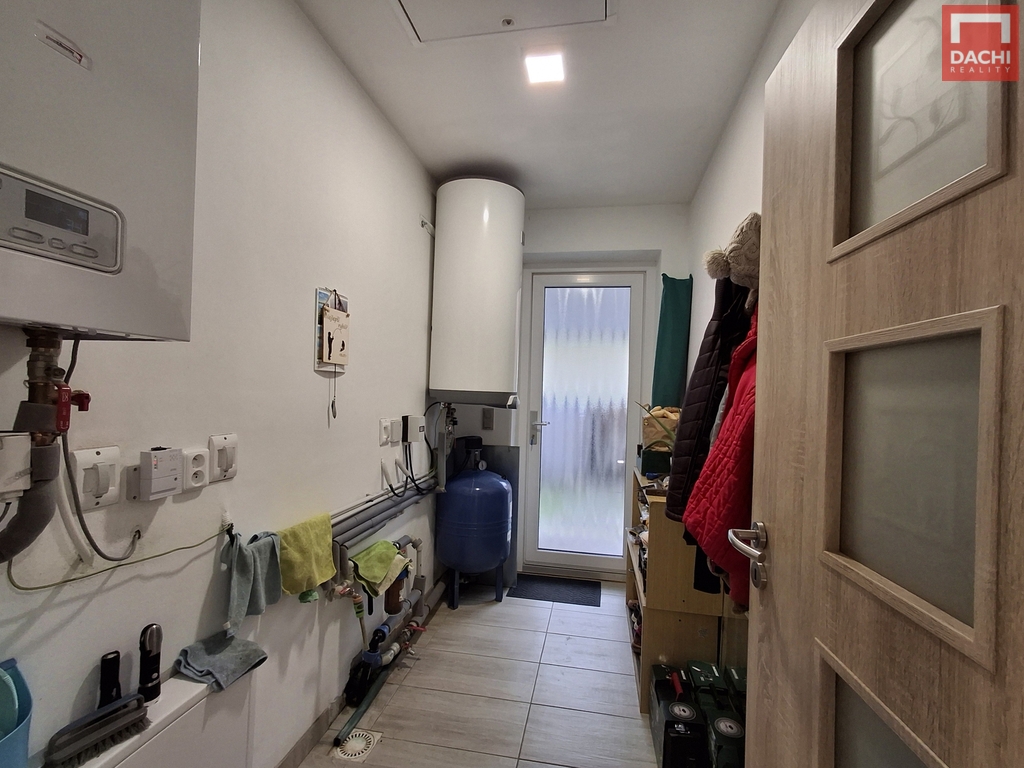 Vytápění je řešeno podlahovým topením s elektrickým kotlem, doplněným krbem. Napojení na obecní vodovod i vlastní studnu, odpad na obecní kanalizaci. Plastová protihluková okna – 7komorová, trojskla. Střecha plechová. Plyn – přípojka před domem.