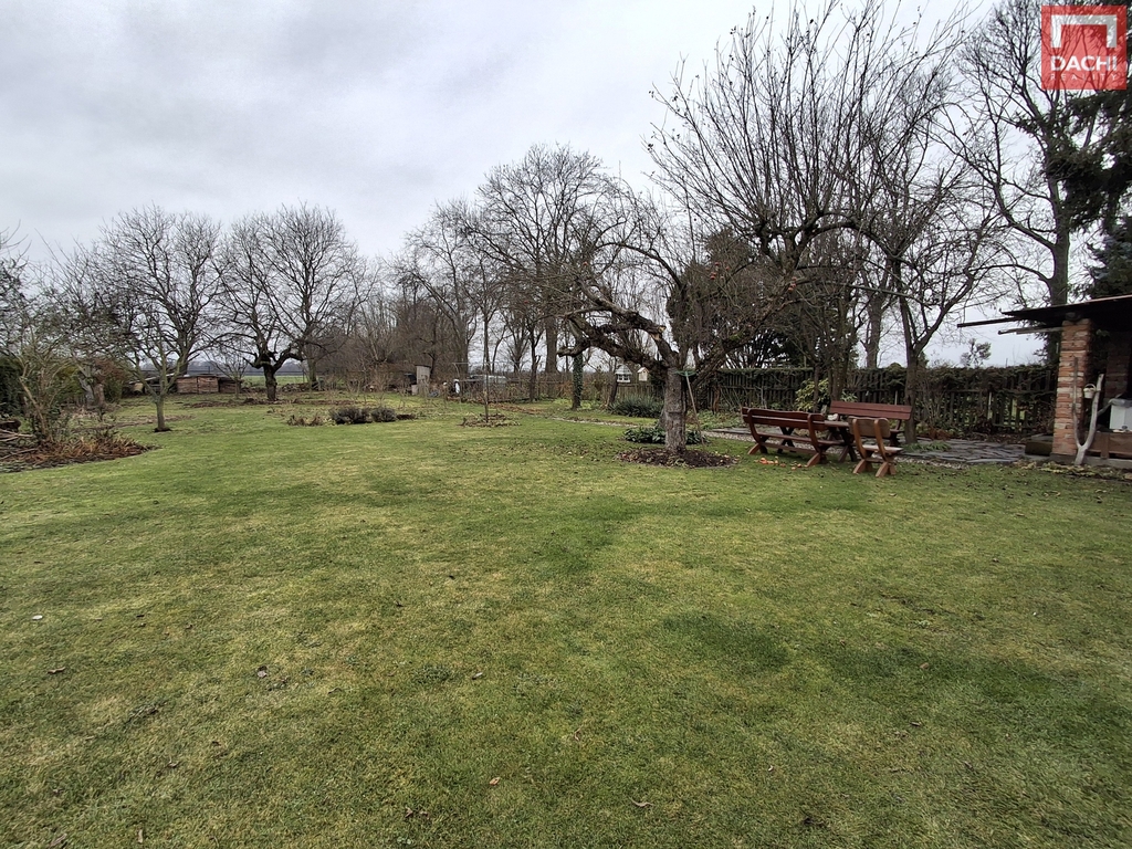 Na pozemku o výměře 1 764 m² se nachází udržovaná zahrada (1 259 m²) s ovocnými stromy, záhonky a krytým posezením. V zadní části zahrady je přímý vstup k polním cestám a lesu.