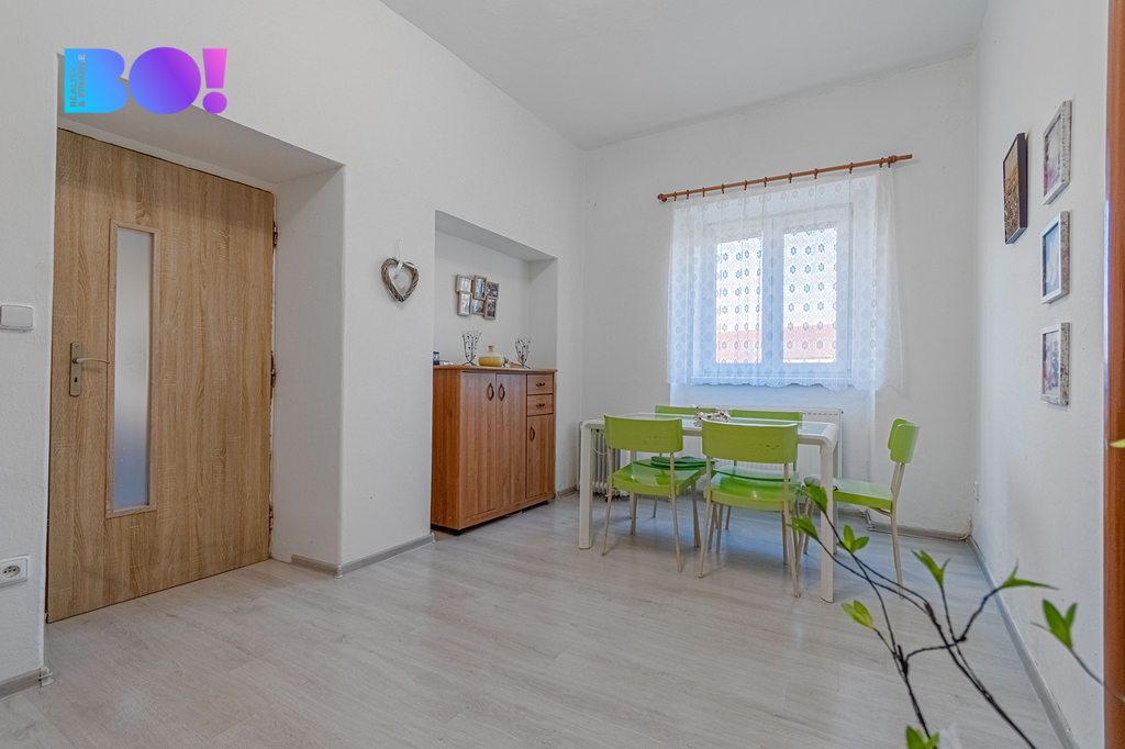 Nemovitost je orientována na jižní stranu, což poskytuje příjemné denní světlo ve všech prostorech. Disponuje celkem sedmi pokoji, které lze flexibilně upravit podle potřeb budoucího majitele. Dům se nachází na pozemku o rozloze 1425m², což zahrnuje také velmi pěknou zahradu ideální pro relaxaci nebo zahradničení. K objektu náleží sklep o velikosti 15 m², dvěma komorami pro uskladnění potřebných potravin, ovoce a zeleniny, dále garáž pro minimálně 2 automobily s dílnou, což zvyšuje komfort a praktičnost bydlení.