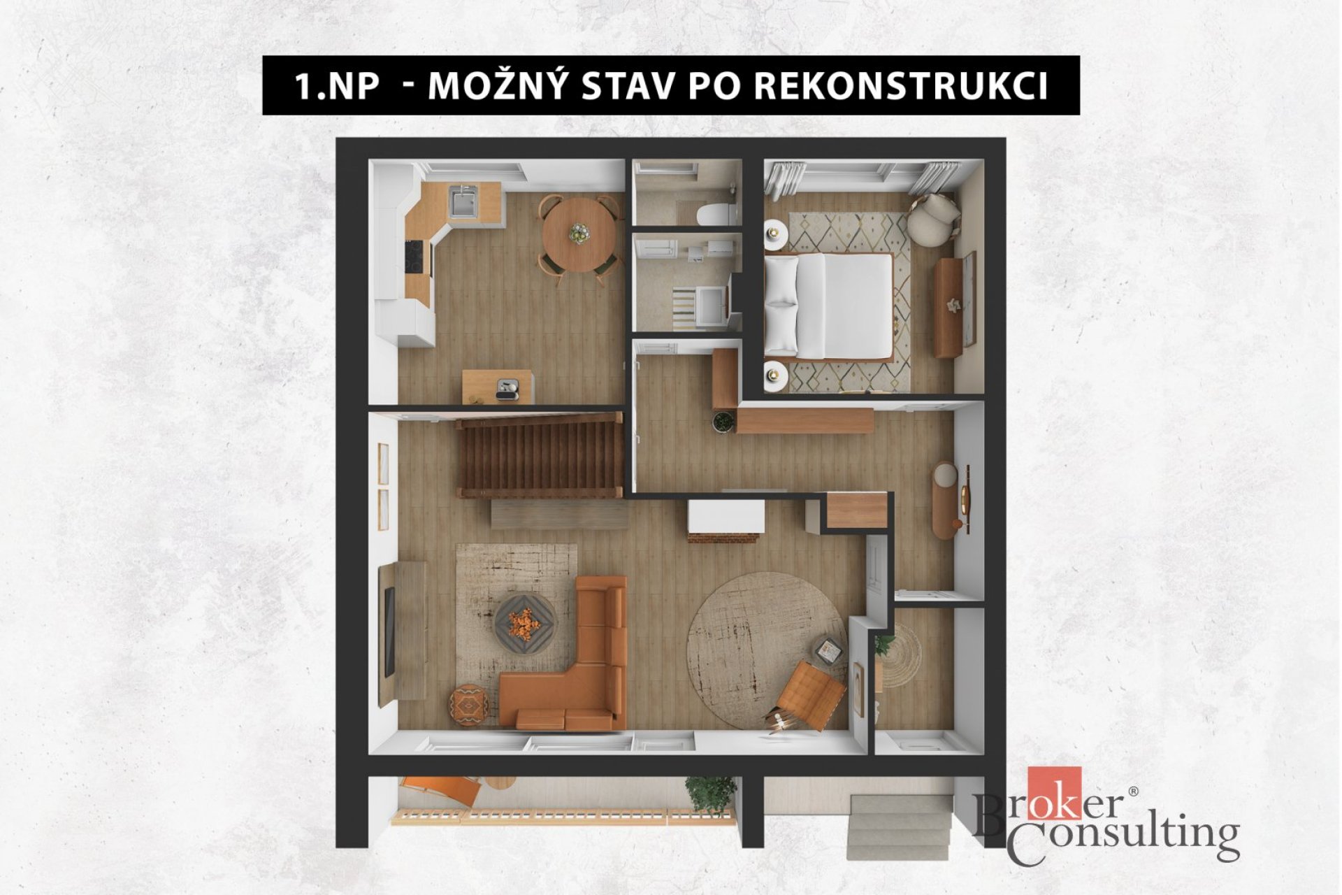 Tento dům je určen k rekonstrukci dle Vašich představ a nabízí rozsáhlé možnosti týkající se využití ( dvougenerační bydlení ) a dispozičních změn.