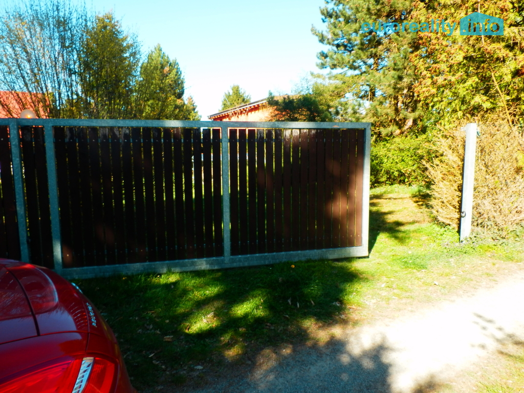 Celý pozemek s chatou je oplocen a opatřen zánovními elektrickými vraty.