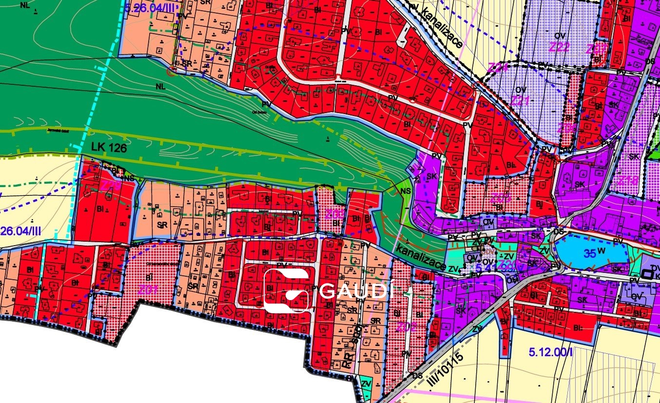 Dle územního plánu se jedná o plochu BI – bydlení v solitérních RD, připouští se RD o 2bytech, připouští se i dvojdům = dva rodinné domy vedle sebe, které k sobě přiléhají vlastní nebo společnou částí obvodové zdi, případně i trojdům.