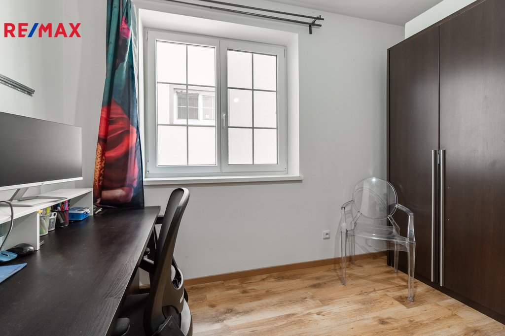 - Tři samostatné pokoje: ložnice (13,77 m²) se vstupem na severní balkon (4m²) , pokoj (12,8 m²), pracovna (8,8m²)