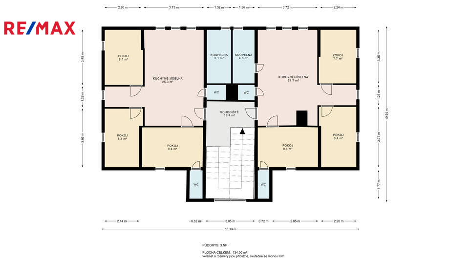Ve 3 NP se nachází 2 zcela samostatné apartmány s kompletně vybavenou kuchyní. Celková UP patra je 134 m2.