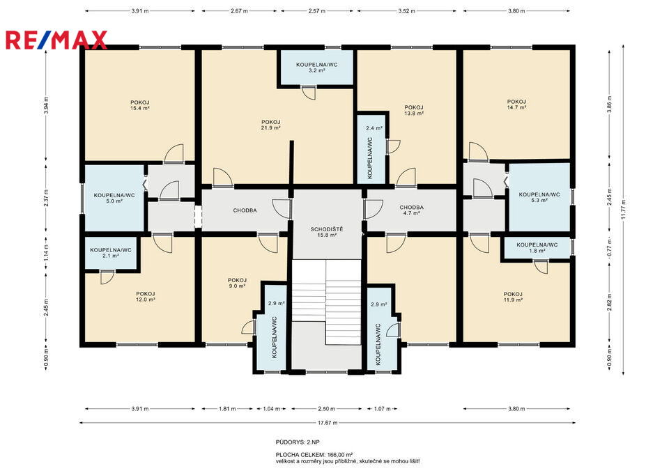 V 2 NP se nachází 8 samostatných pokojů, celková UP je 166 m2.