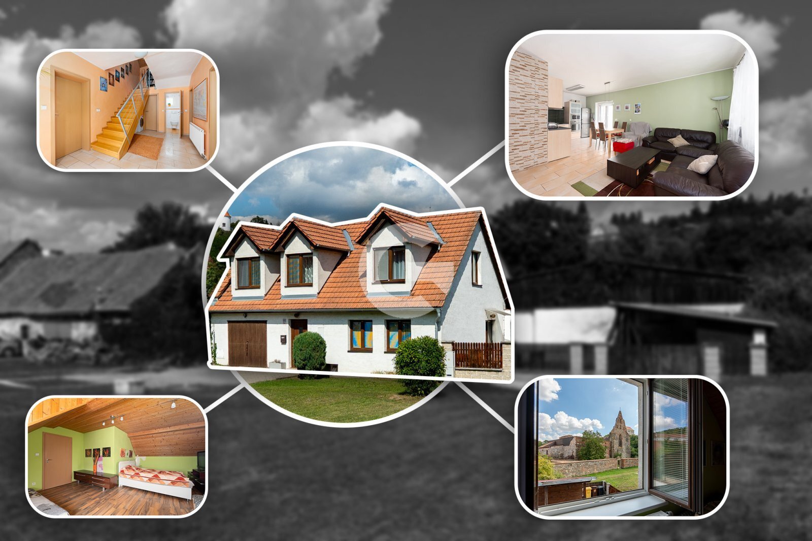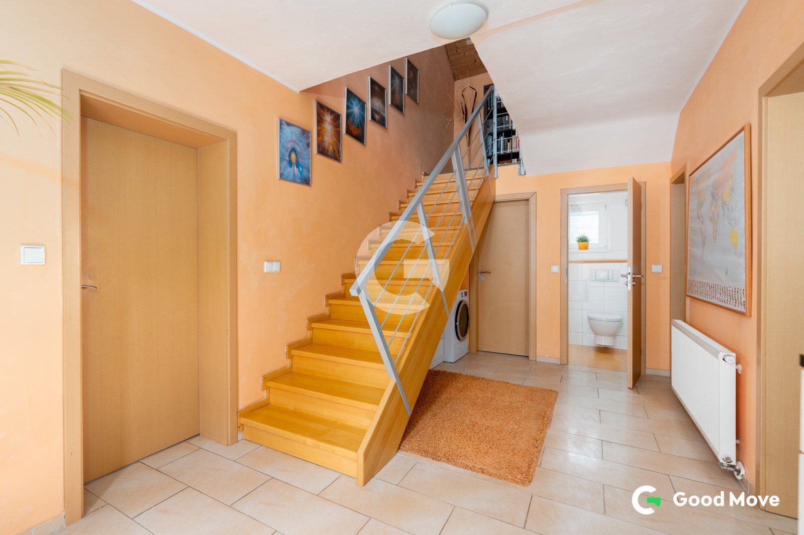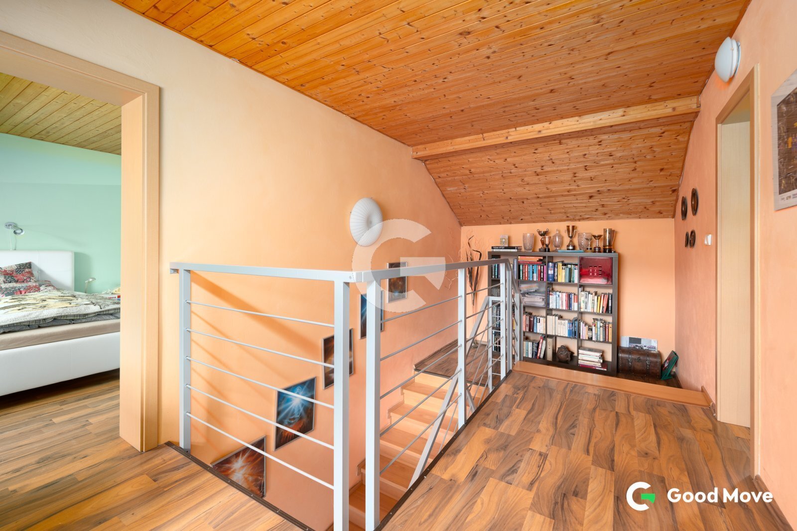 Dům má praktickou dispozici 3+kk s obytným podkrovím, která nabízí komfortní bydlení pro rodinu i jednotlivce. Součástí je garáž a dvě venkovní parkovací stání, což zajišťuje pohodlné parkování i pro návštěvy. Pozemek o rozloze 984 m² je rovinatý, ideální pro zahradu, odpočinkovou zónu nebo další využití dle vašich představ. Díky orientaci na jih a západ jsou obytné místnosti krásně světlé a prosluněné.