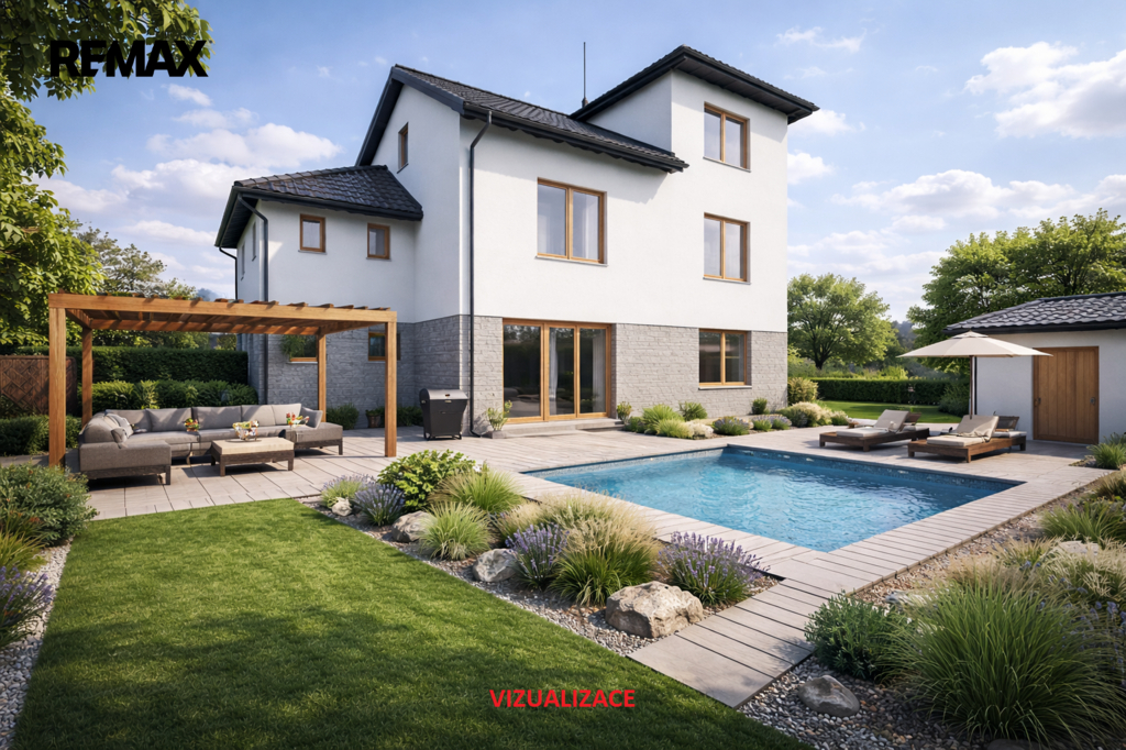Na zahradě garáž 20 m², hospodářská budova s podlahovou plochou 28 m², se sedlovou střechou a dalšími úložnými prostory. A také kopaná studna.