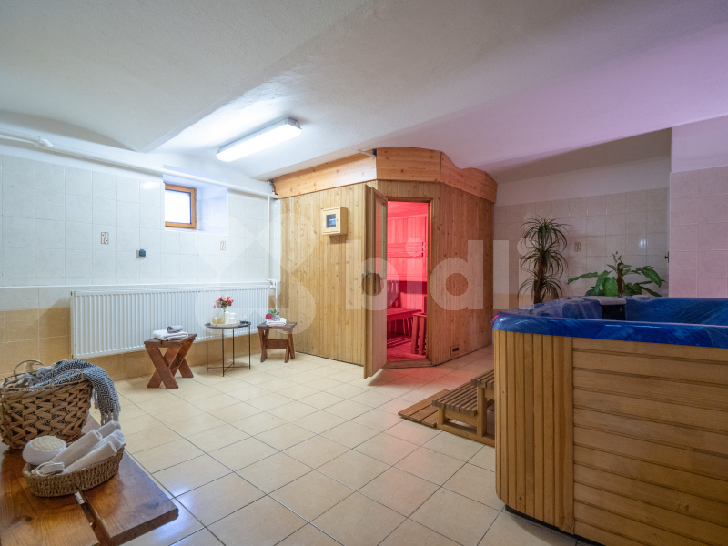 Plně vybavený penzion se stylovou restaurací, kuchyní, barem a letní terasou s grilem. Devět útulných pokojů s vlastním sociálním zázemím a kapacitou 40 osob. Dvě kulečníkové herny, salonek a služební byt. V suterénu stylový historický vinný sklípek i wellness. U vchodu prostorné parkoviště i kryté stání. Do domu je zavedena elektřina, plyn, veřejný vodovod a veřejná kanalizace. Komfort ústředním vytápěním zajišťuje moderní kotelna na plyn i dřevo.