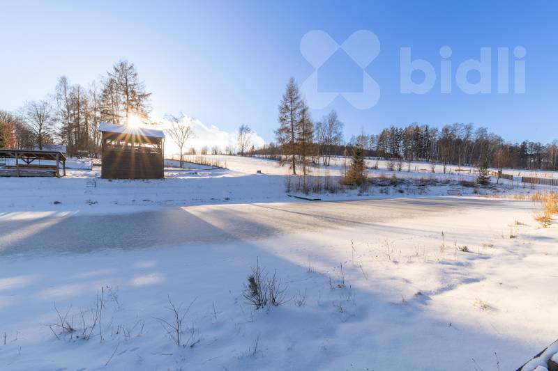 Na pozemku je k dispozici venkovní jízdárna, oplocená obora s hodnotnými stromy, dančí zvěří a tůň s napajedlem. Atmosféru dokresluje vlastní rybník 1500 m2 s dřevěnou rozhlednou, vybudovaný s dokonale vyváženou skladbou použitých rostlin a kamenných obkladů. Úžasný výhled do půvabného okolí si můžete užívat v naprostém soukromí.