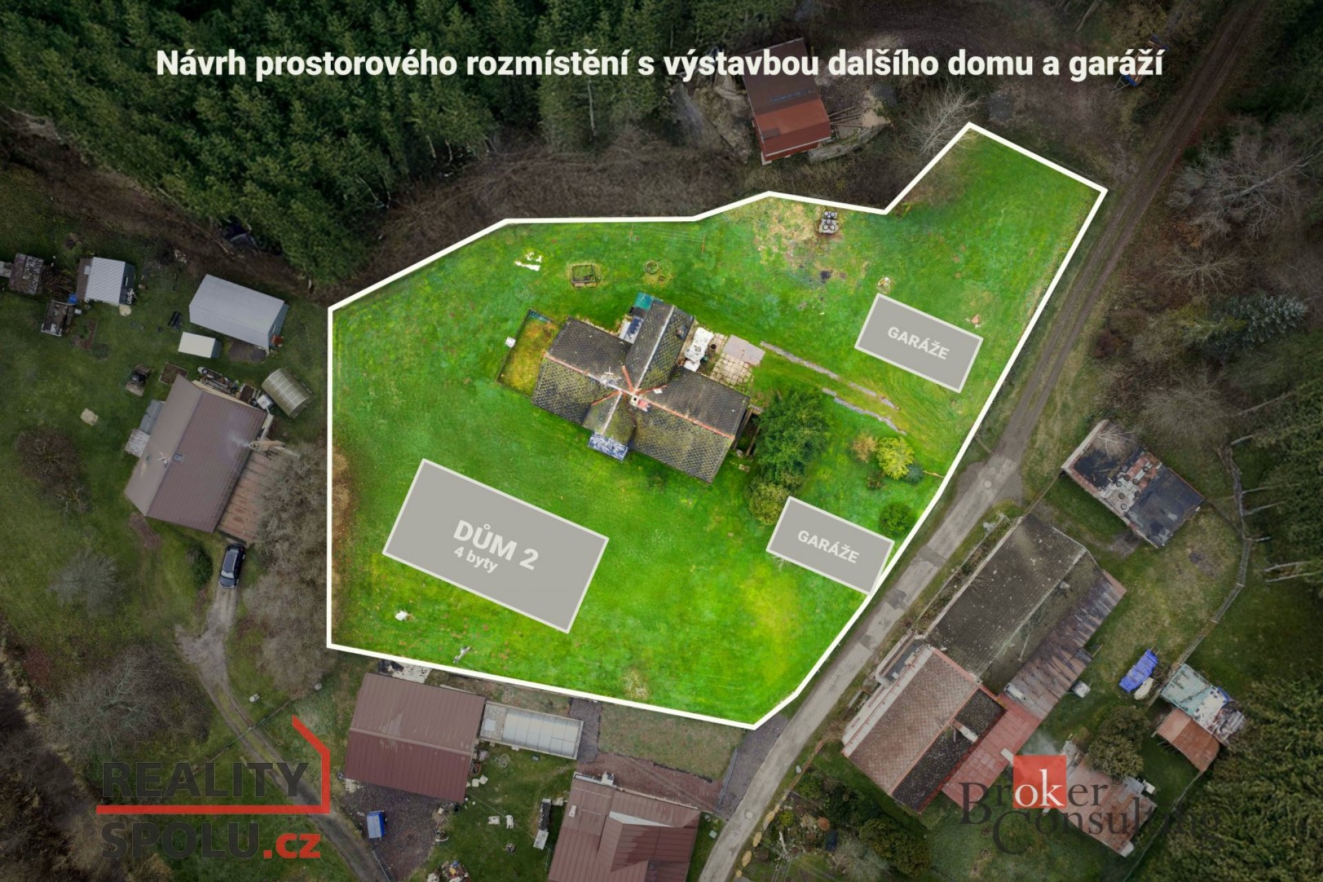 Pro developery je zde možnost výstavby až 9 bytů s úvahou s dalším domem na pozemku - viz půdorys a nákres pozemku s možnými garážemi.