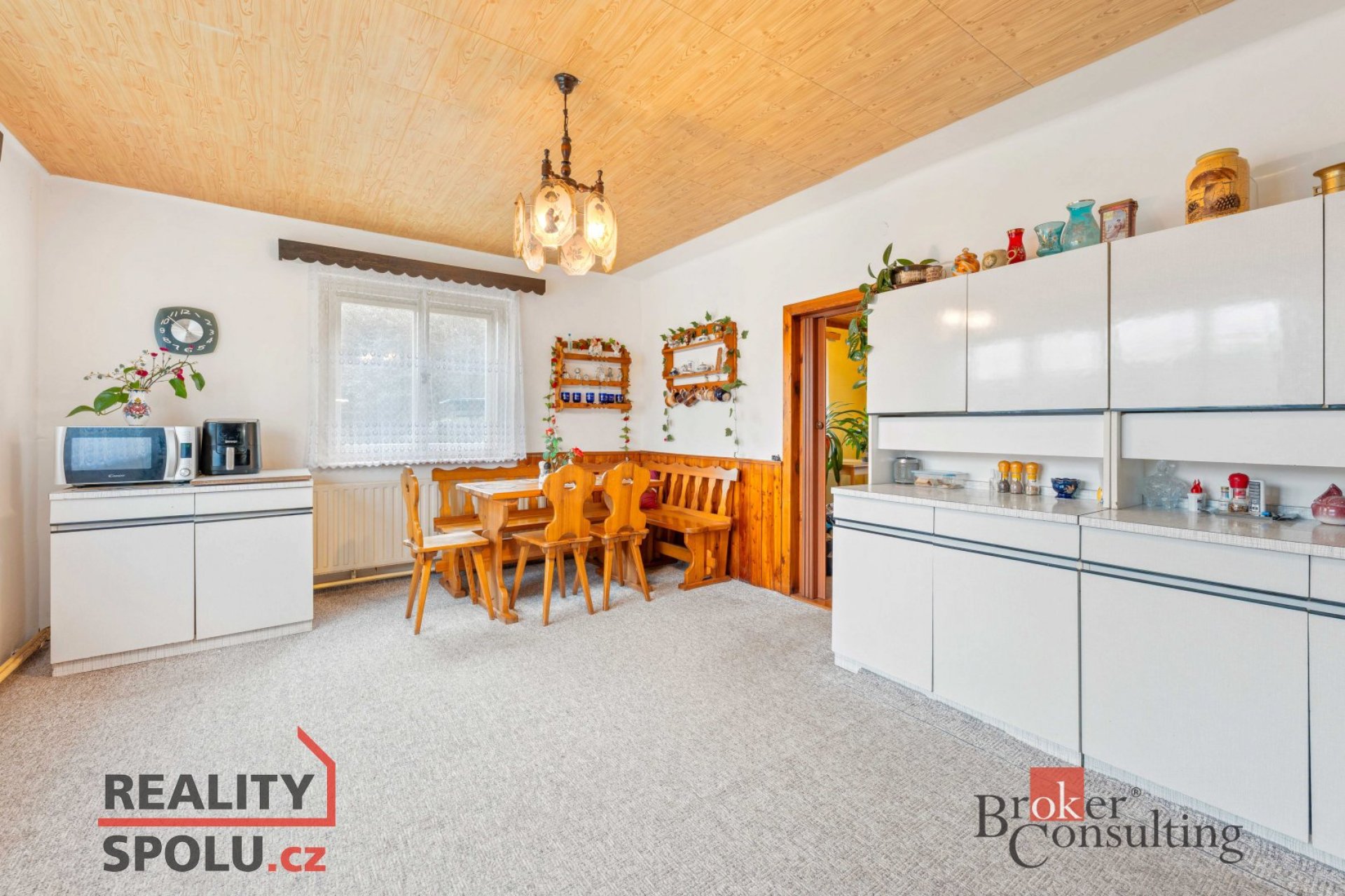 Poctivý zděný dům je v původním udržovaném stavu s novějším kotlem na pelety s automatickým podáváním a ústředním topením. V přízemí je vstup chodbičkou do velké chodby, kde jsou kamna a schodiště do patra. Z této chodby je vstup do prostorné kuchyně a dále se v přízemí nacházejí tři pokoje, koupelna a WC. Součástí přízemí je také velká garáž, pod kterou jsou menší sklepní prostory.