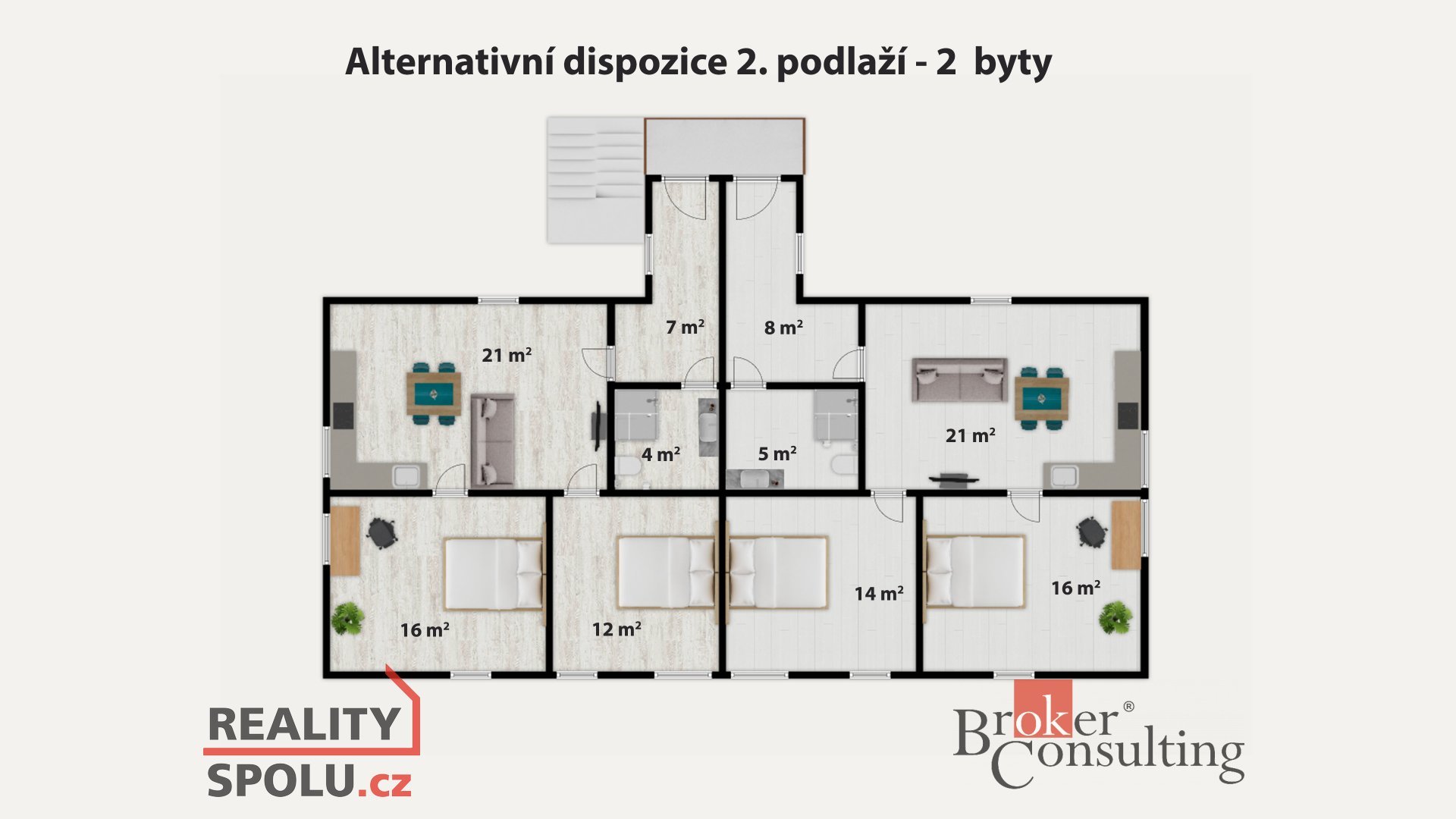 Dům je vhodný pro větší rodinu nebo pro podnikatele. Rovněž může být zajímavý i pro developery.