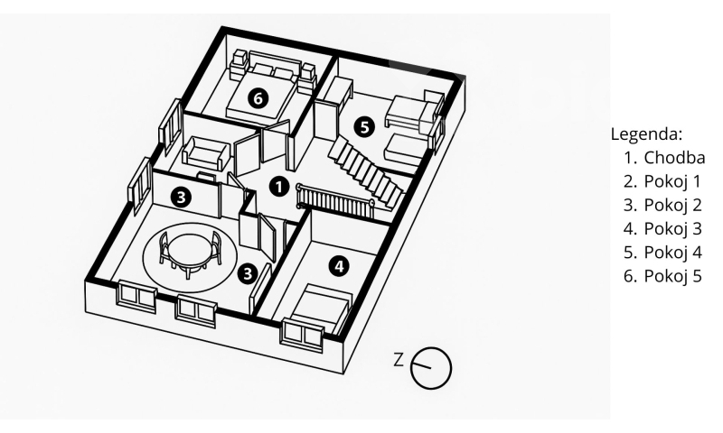 V patře je situováno pět samostatných pokojů. Pokoje mohou sloužit jako ložnice, dětské pokoje, pracovna nebo pokoj pro hosty. Díky této dispozici působí celý prostor velmi flexibilně a snadno se přizpůsobí potřebám nového majitele.