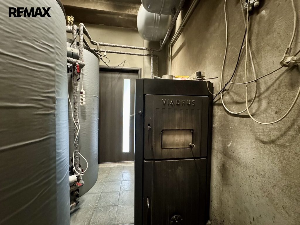 V domě a dílně jsou zavedeny všechny sítě – plyn, elektřina 400 V, voda a kanalizace.