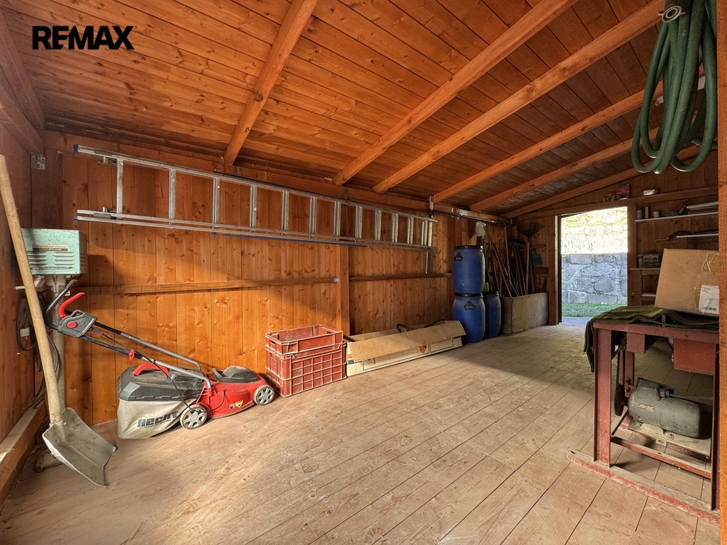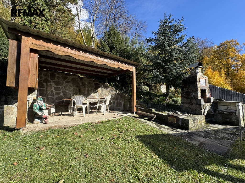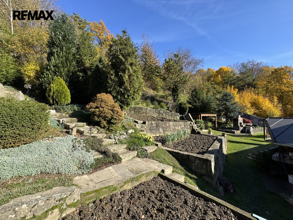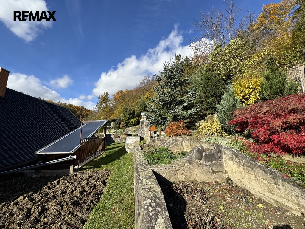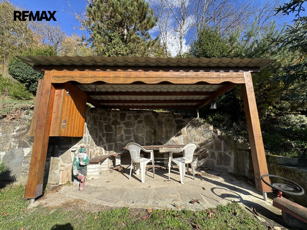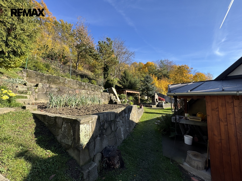 Součástí pozemku je terasovitá zahrada, kde si můžete vypěstovat vlastní ovoce a zeleninu. K dispozici je také skleník a mnoho prostoru pro odpočinek. Majitel navíc na zahradě postavil originální dětský hrad – místo, které potěší každé dítě a dodává celému pozemku osobitý charakter.
