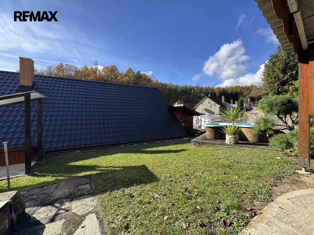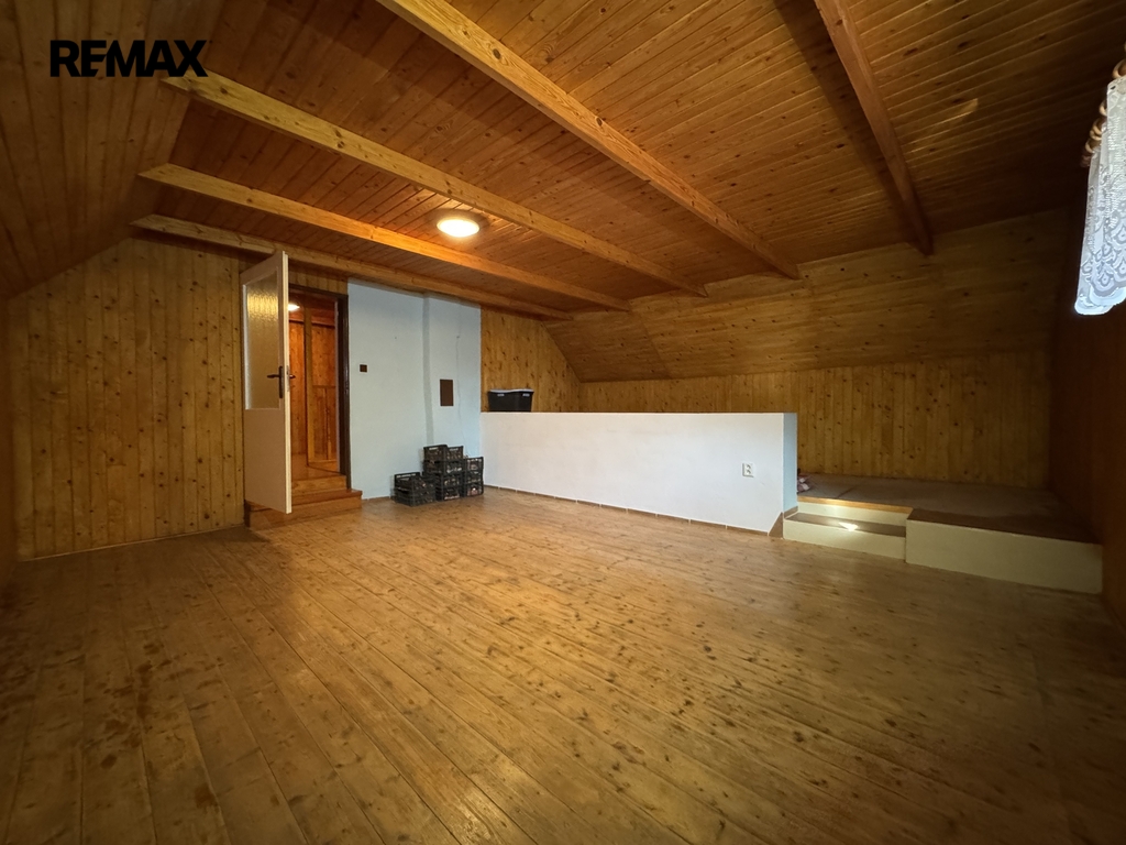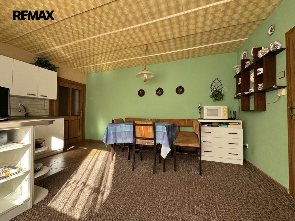 Dům se nachází v klidné části obce a je tvořen hlavní obytnou částí (cca 105 m²) a odděleným prostorem bývalé prodejny, kterou lze přestavět například na menší byt, kancelář, dílnu, ateliér nebo o tento prostor rozšířit dům. V domě naleznete v 1. NP byt s dispozicí 2+1 se špajzem, koupelnou, WC a vstupy na zahradu, do prodejny nebo 2. NP, kde se nachází půda a letní místnost bez vytápění. Dům prošel postupnými rekonstrukcemi na počátku 90. let (elektřina, voda, odpady, plyn, vytápění, omítky, fasáda), 1996 (podklady), 1997 (koupelna s WC), 1998 (vybudování prodejny se sklepem), 2000 (skleník), 2005 (koupelna a WC venkovní/zahradní), 2008 (plastová okna), 2011 (kanalizace), 2016 (krytina střechy), 2017 (technická místnost), 2021 (kuchyně). Objekt je částečně podsklepený, udržovaný a připravený k dalším úpravám podle potřeb nového majitele. K domu náleží také přístřešek pro auto a technické zázemí.