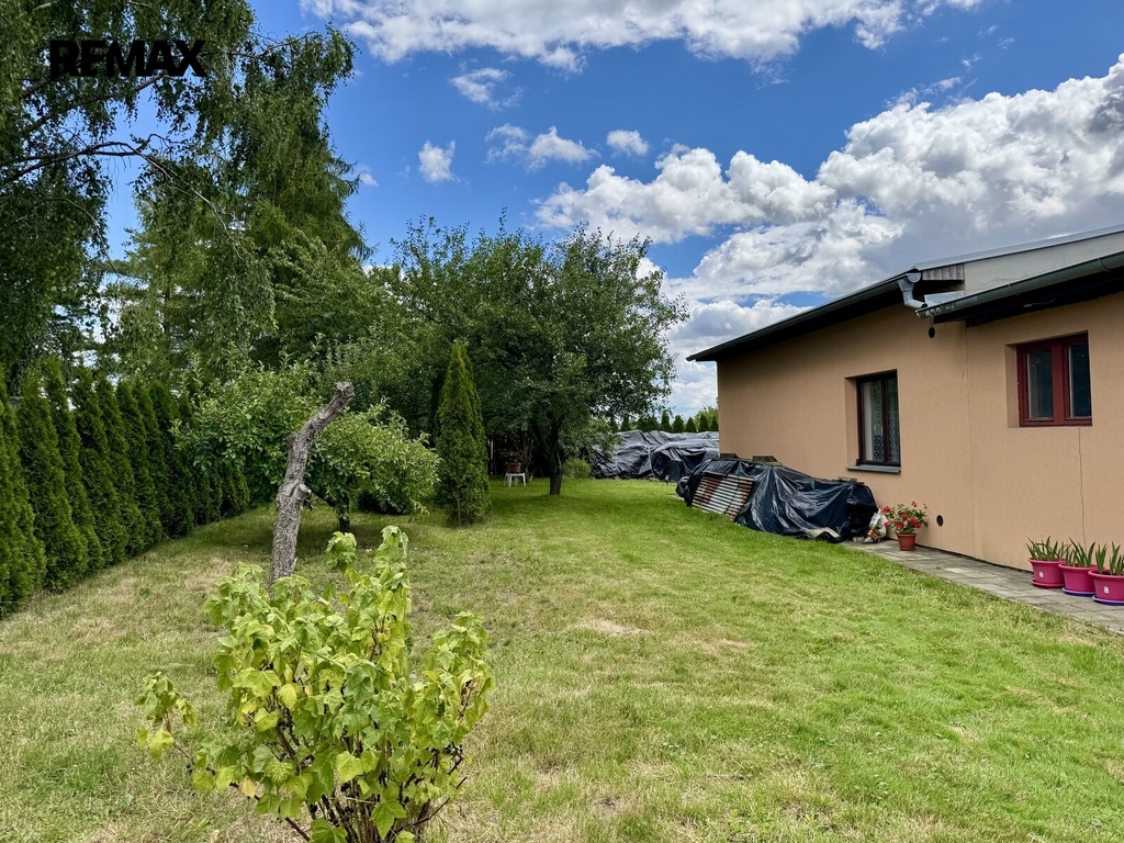 Ovocný sad: Na zahradě najdete vzrostlé a plodící stromy (švestky, třešně, ryngle).