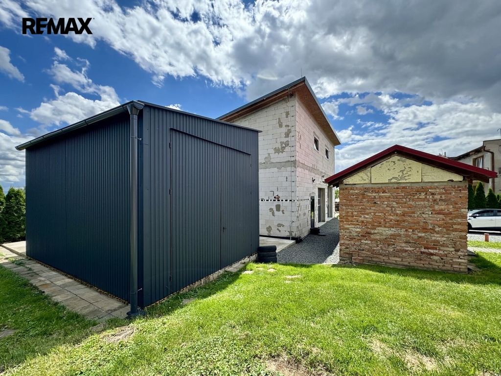 Tato budova je aktuálně zkolaudována jako autodílna, ale díky své konstrukci je připravena k okamžitému dobudování na třetí rodinný dům.