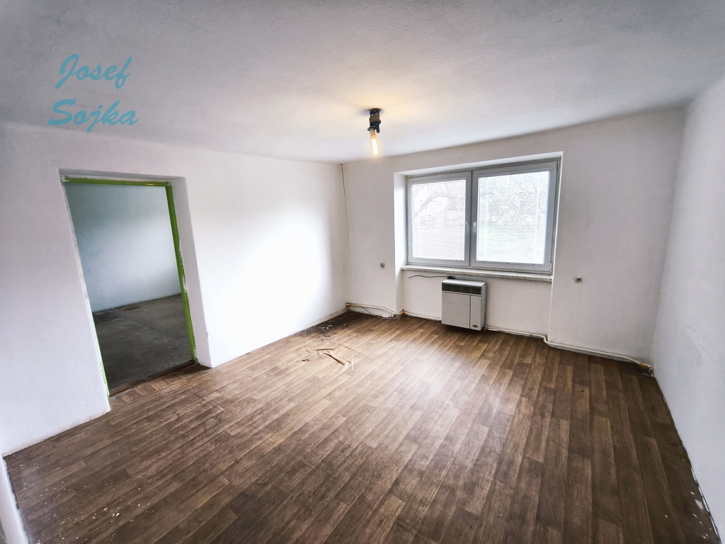 ložnice 19m2, pokoj 18m2, kuchyně 8m2, koupelna s WC 3,4m2.