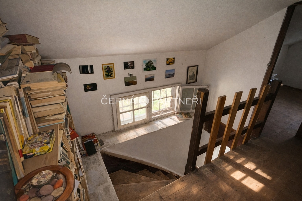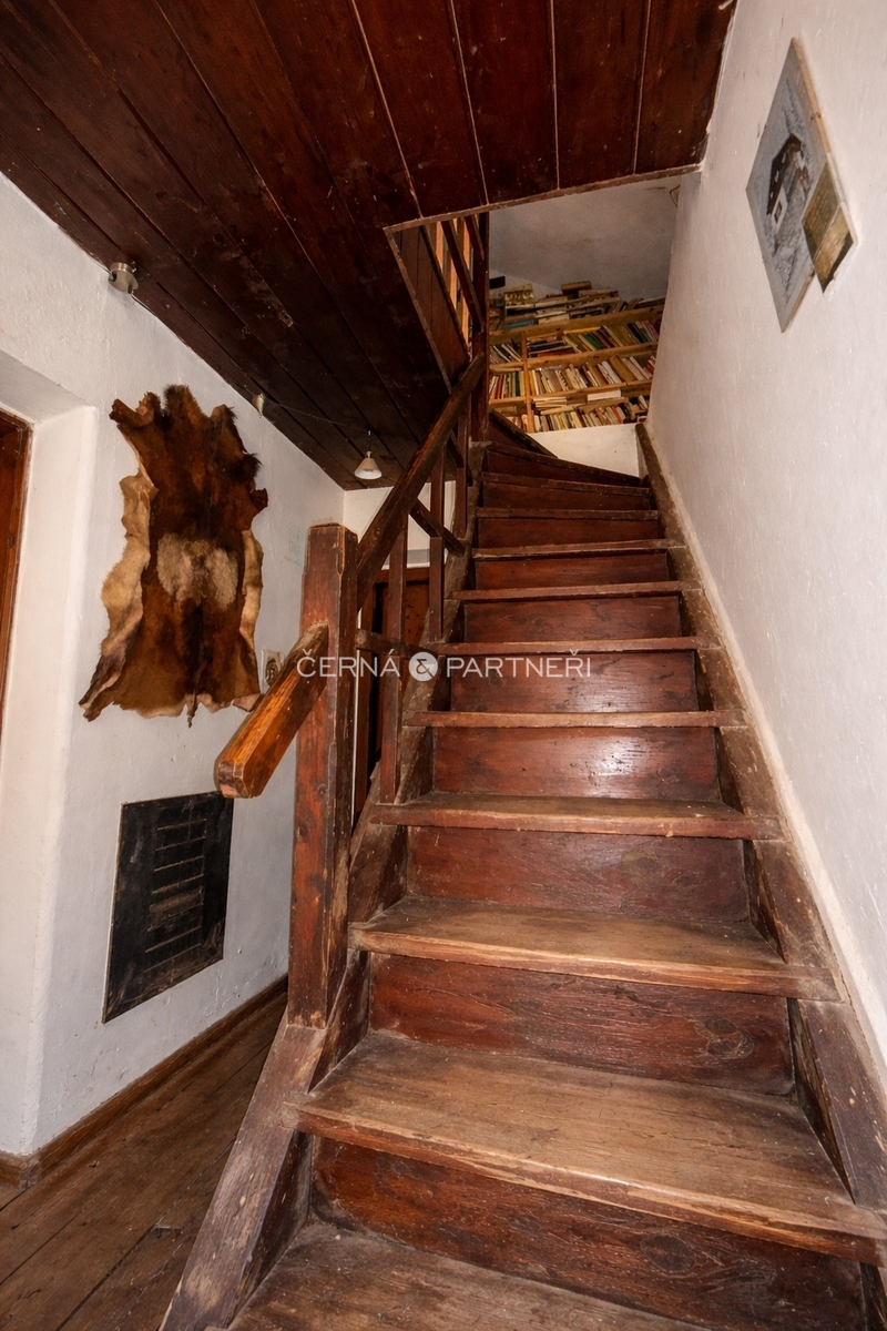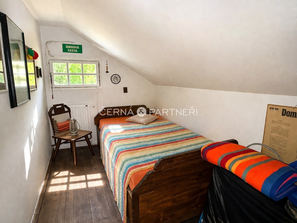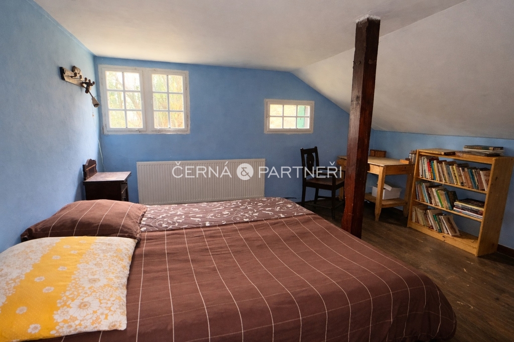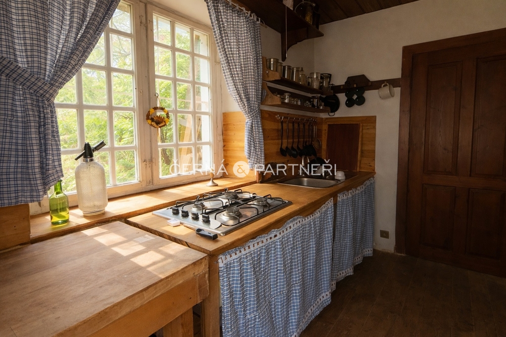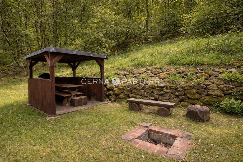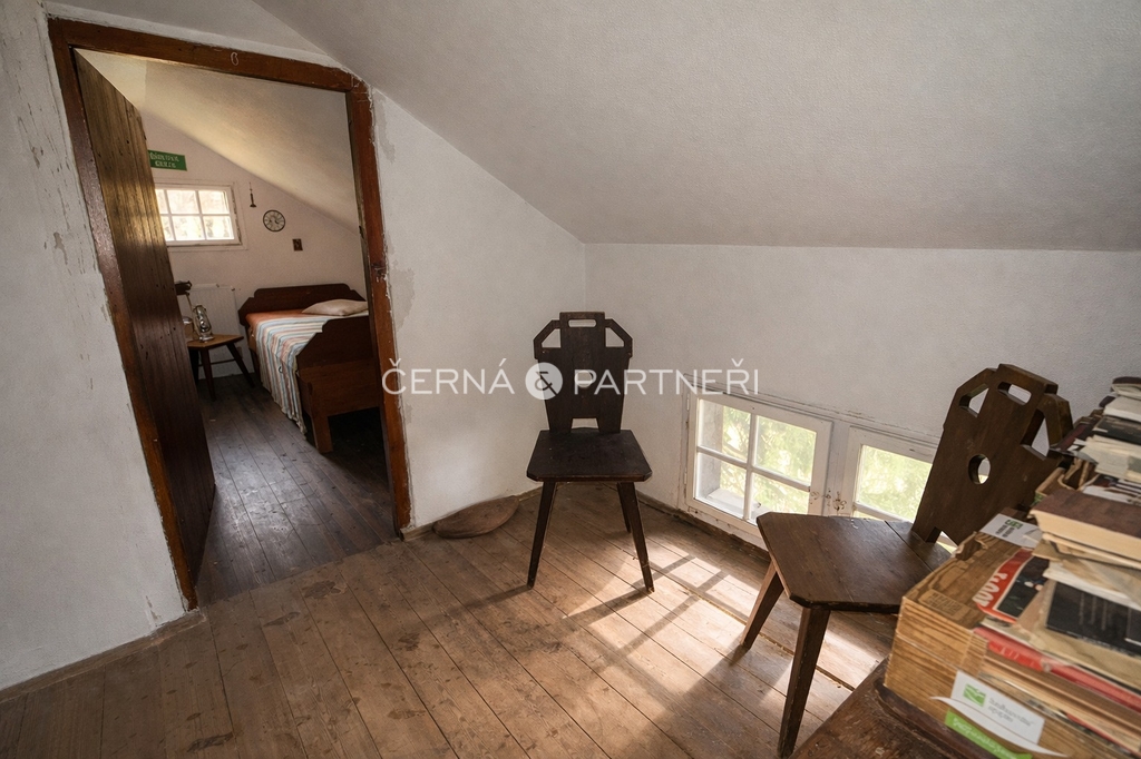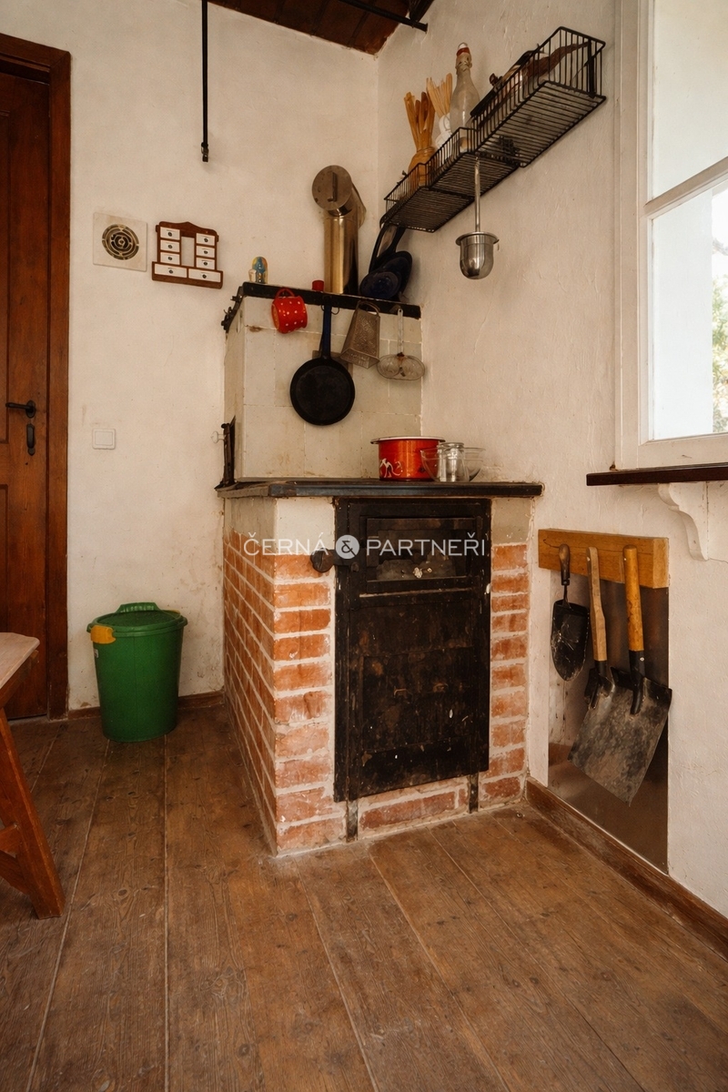Energie a vybavení: vlastní studna, elektřina rozvedená po domě, napájení přes nabíjecí baterie a agregát, venkovní ohniště, dřevěná kůlna na nářadí, veškeré vybavení zůstává součástí prodeje.