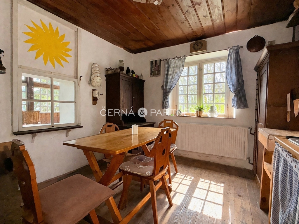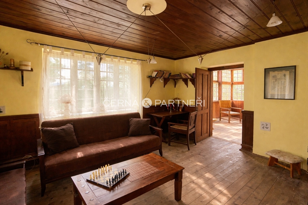 Chata disponuje: 5 pokoji, zimní zahradou, kamny s rozvodem tepla po celém domě, možností celoročního bydlení i víkendových pobytů