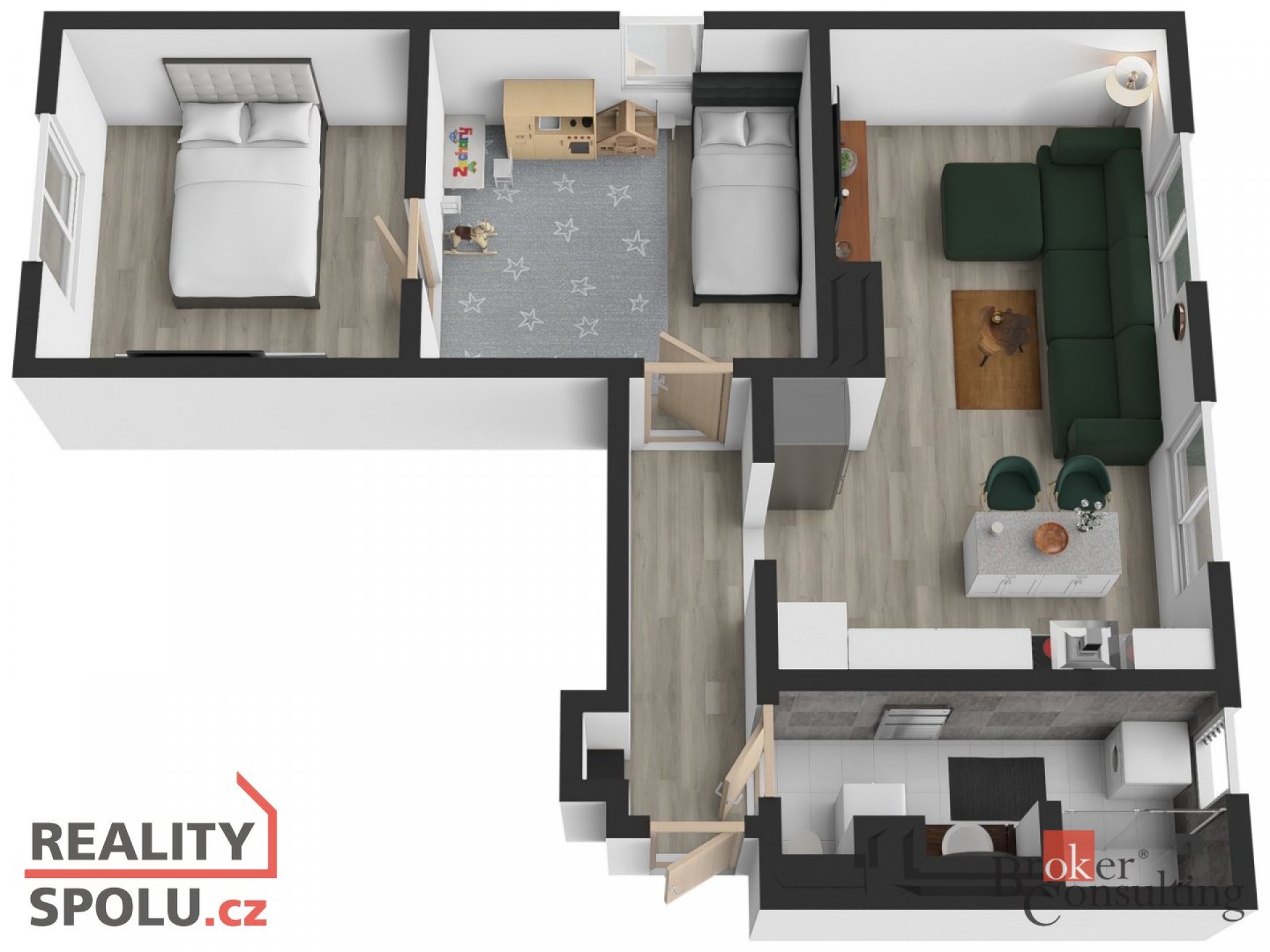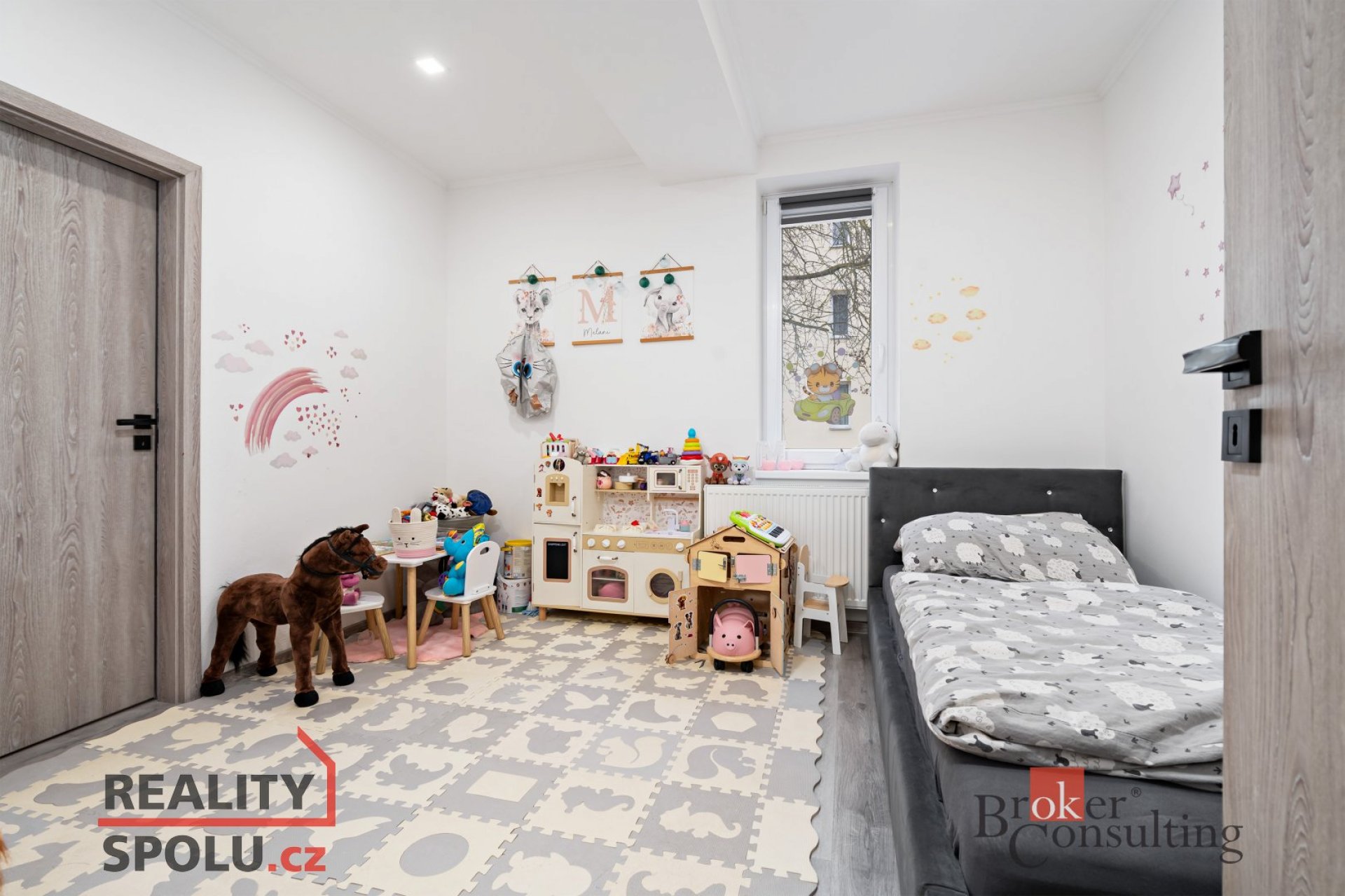 Vybavení bytu zůstává dle fotografií. V dětském pokoji zůstává pouze postel, ostatní vybavení a hračky budou vyklizeny.