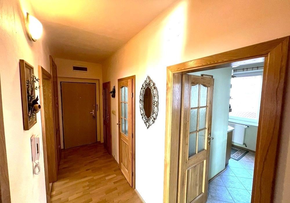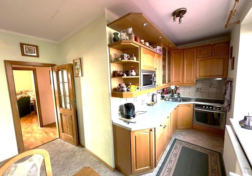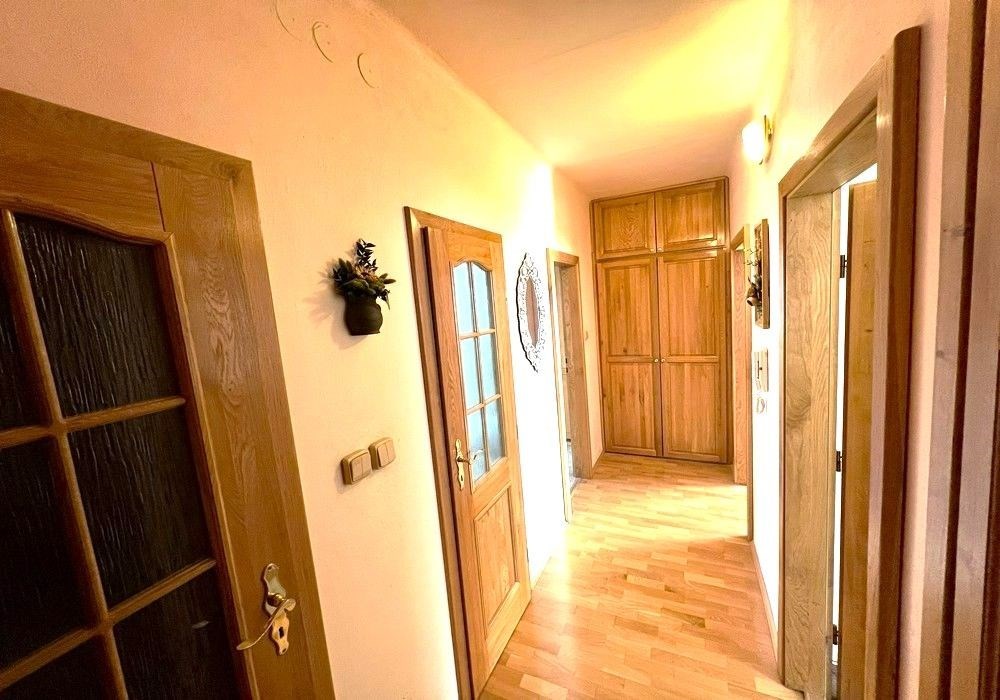 Podlažní byt o dispozici 4KK s krytou lodžií a příslušenstvím situovaný ve III. NP (2.patro) bytového domu v klidné, severní části města Domažlice s dostupností kompletních služeb a infrastruktury. Kompletně zařízený a provozně vybavený byt (obývací místnost s lodžií, 2x ložnice, jídelna, kuchyňský kout, předsíň, koupena, WC) o celkové výměře užitné podlahové plochy 91,41 m2 s externím příslušenstvím (1x sklepní kóje 10 m2). Orientace oken v bytu na jih a sever s výhledem na okolní zástavbu bytových domů a veřejnou zeleň. Byt je situován ve 2. patře budovy čtyřpodlažního bytového domu bez výtahu s celkem osmi bytovými jednotkami. Třída ENB: G průkaz nezpracován. Byt po kompletní rekonstrukci provedené v roce 2003 je zařízen původním nábytkem a provozním vybavením, připravený k okamžitému nastěhování a bydlení s možností předání bytu od termínu 04/2026. Součástí nájmu je možnost užívání vlastních skladovacích prostor (1x sklep) a užívání všech společných prostor a příslušenství bytového domu (sušárna, kolárna, posilovna...). Bytový dům, ve kterém se byt nachází, je situován v okrajové části města s okolní zástavbou bytových domů a veřejnou zelení. Byt je vhodný a využitelný k dlouhodobému rodinnému bydlení pro max. 4 osoby v okresním městě s dostupností kompletních služeb, infrastruktury a dobrou dopravní dostupností. Možnost parkování osobního automobilu na veřejném parkovišti ihned u bytového domu. Dispozice bytu: vstup, předsíň, jídelna, kuchyňský kout, obytná místnost s lodžií, 2x ložnice, koupelna (vana, umyvadlo, pračka), WC. Vybavení bytu: kuchyňská linka, sporák, digestoř, koupelnové vybavení, šatní skříň, jídelní stůl, židle, komplet nábytek, zařizovací předměty, pračka, 2x postel… + telekom / internet / TV rozvody. Celková užitná plocha bytu: 94,21 m2 (byt 81,49 m2, lodžie 2,80 m2, ext. skladovací prostor 9,92 m2). Vytápění: vlastní plynové (etážové) plynový kotel s vlastní regulací pouze pro byt. Výše nájemného: 15.000,Kč / měsíčně + provozní energie a služby (od cca 4.500, Kč).