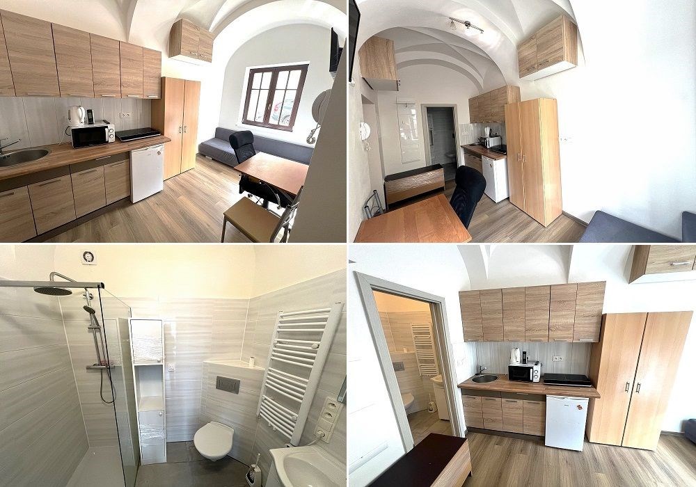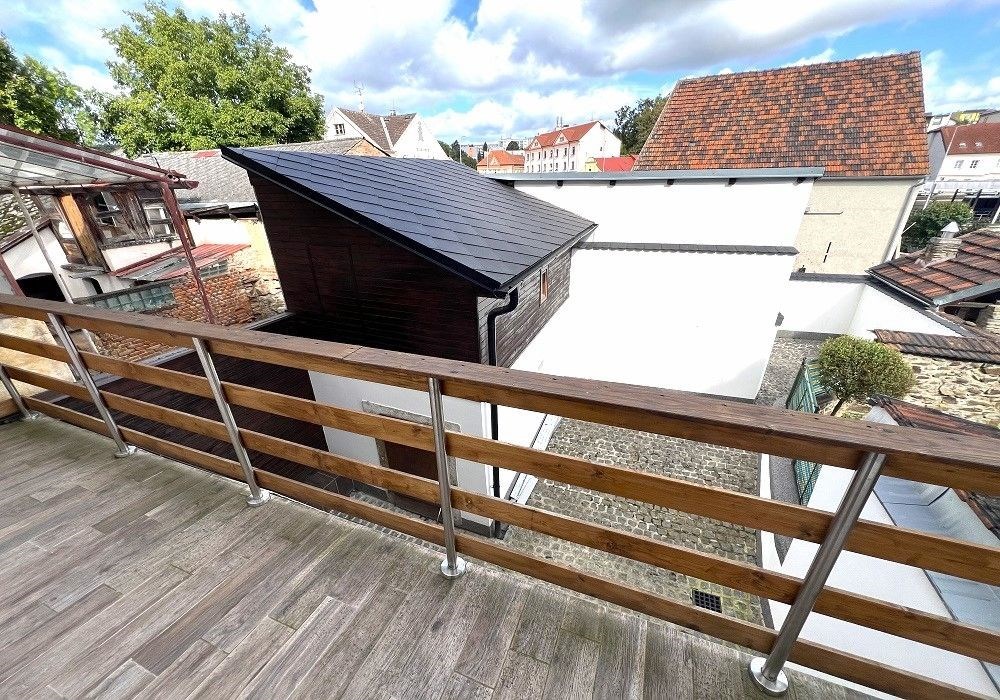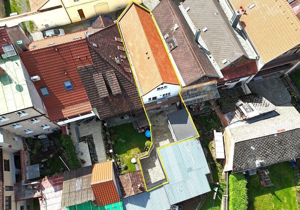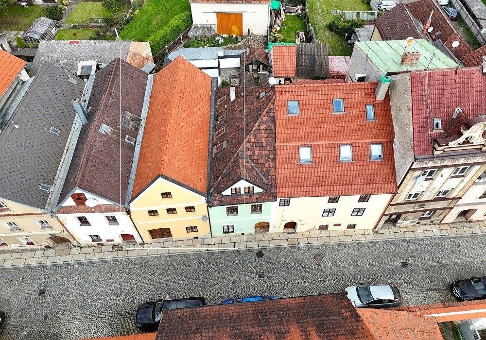 Zrekonstruovaný dům ke komerčnímu využití v centru Domažlic.
