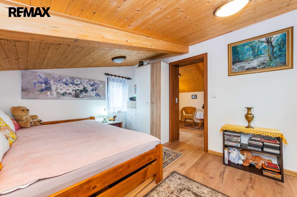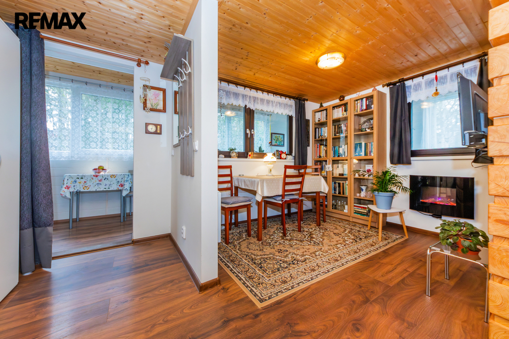 Chata byla postavená na klíč specializovanou firmou v roce 2020. Dispozičně je řešena velmi prakticky - vstupní předsíň plynule navazuje na verandu, která byla stavebně upravena a plnohodnotně začleněna do obytného prostoru. Dále vstupujeme do útulného obývacího pokoje, který je prakticky propojený s kuchyňským koutem, na který navazuje koupelna se sprchovým koutem a toaletou. Po točitých schodech se dostaneme do patra, kde jsou situovány dvě ložnice.