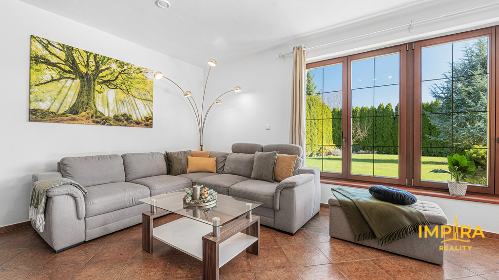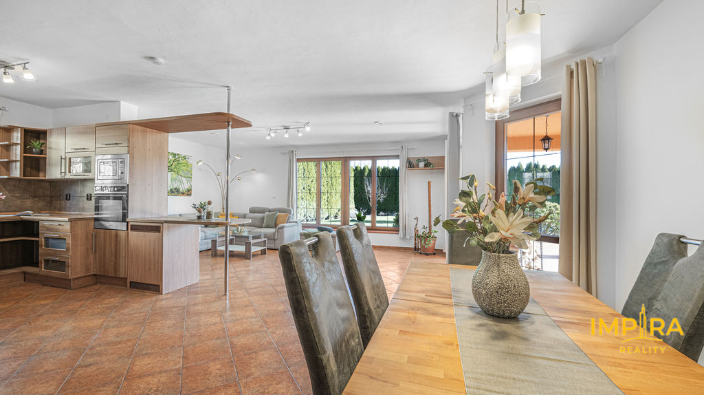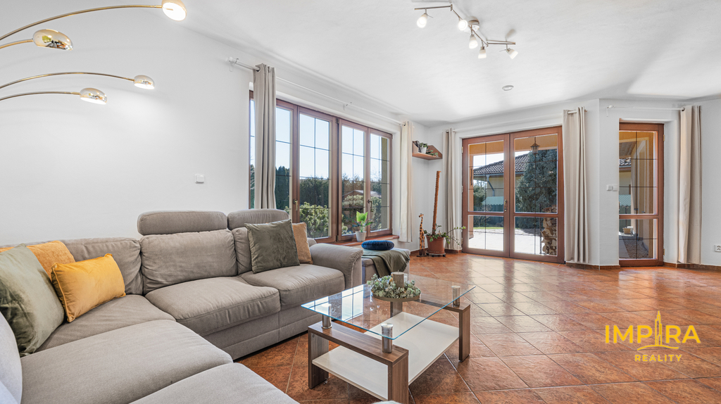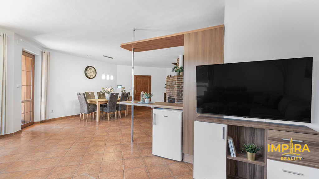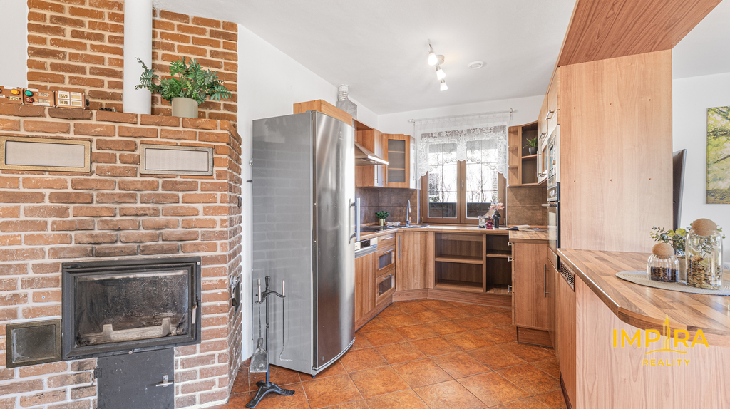 Dispozice: 4+kk s prostorným obývacím pokojem a krbem