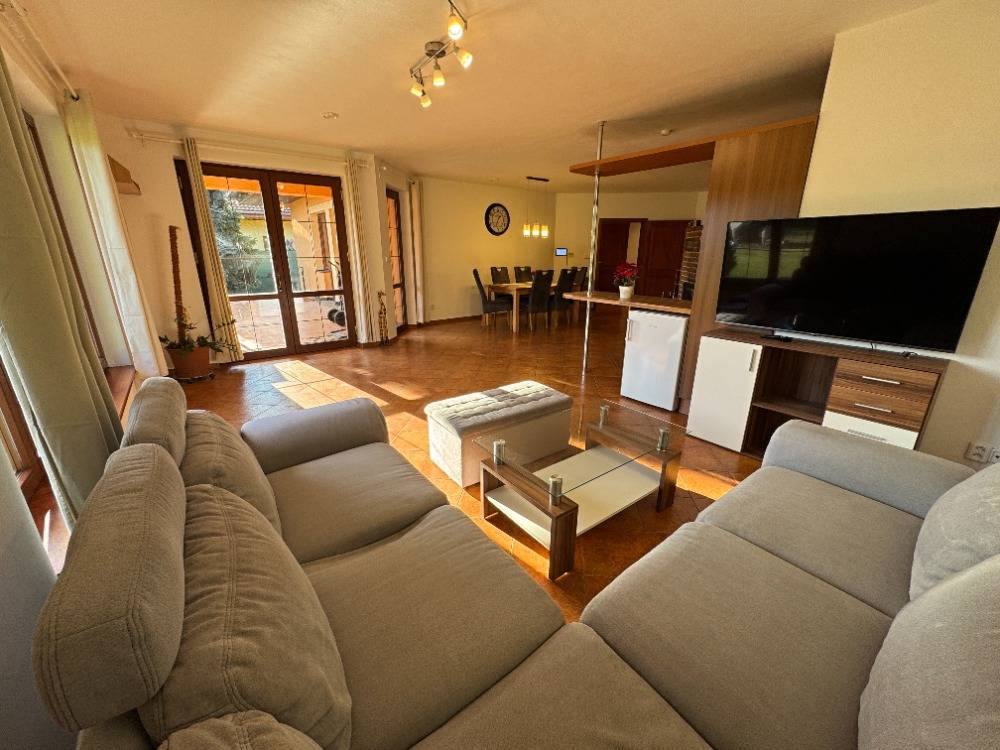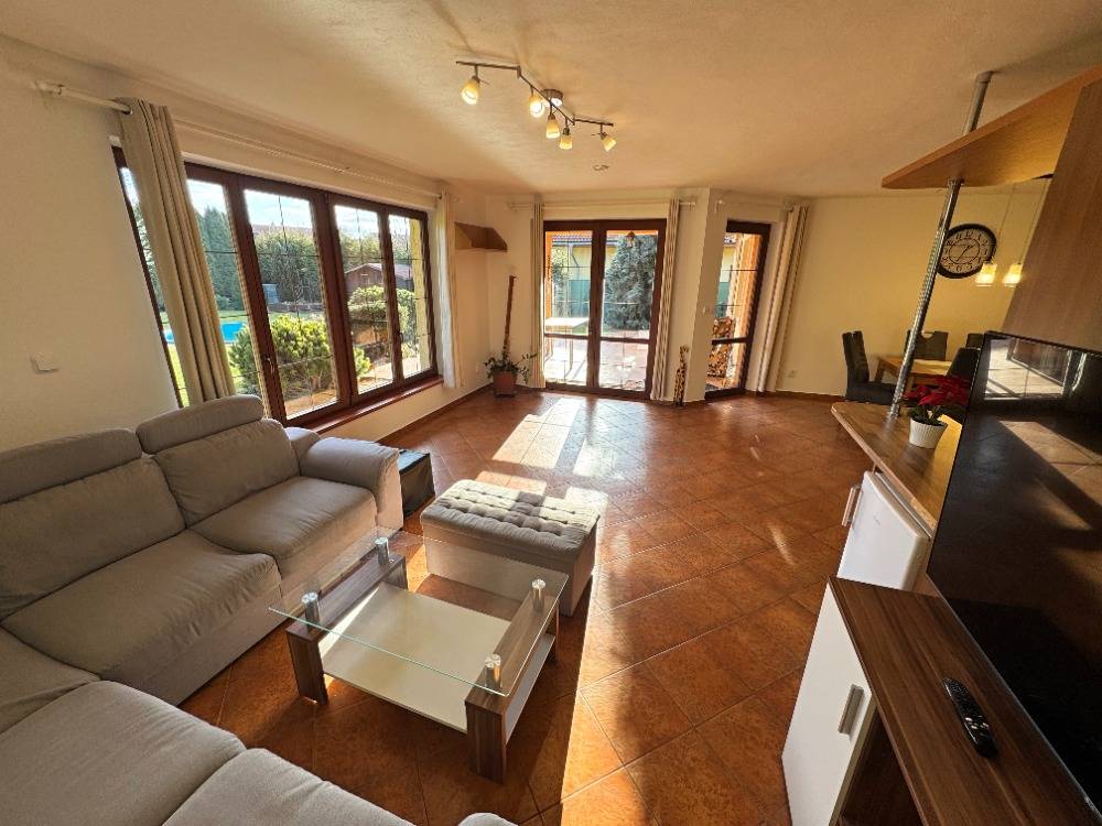Pozemek je kompletně upravený a bezúdržbový – automatická závlaha a robotická sekačka zajišťují pohod-lí, zatímco vyhřívaný bazén poskytuje prostor pro relaxaci během celé sezóny. Celý dům působí velmi re-prezentativně a díky moderním technologiím je provozně nenáročný.