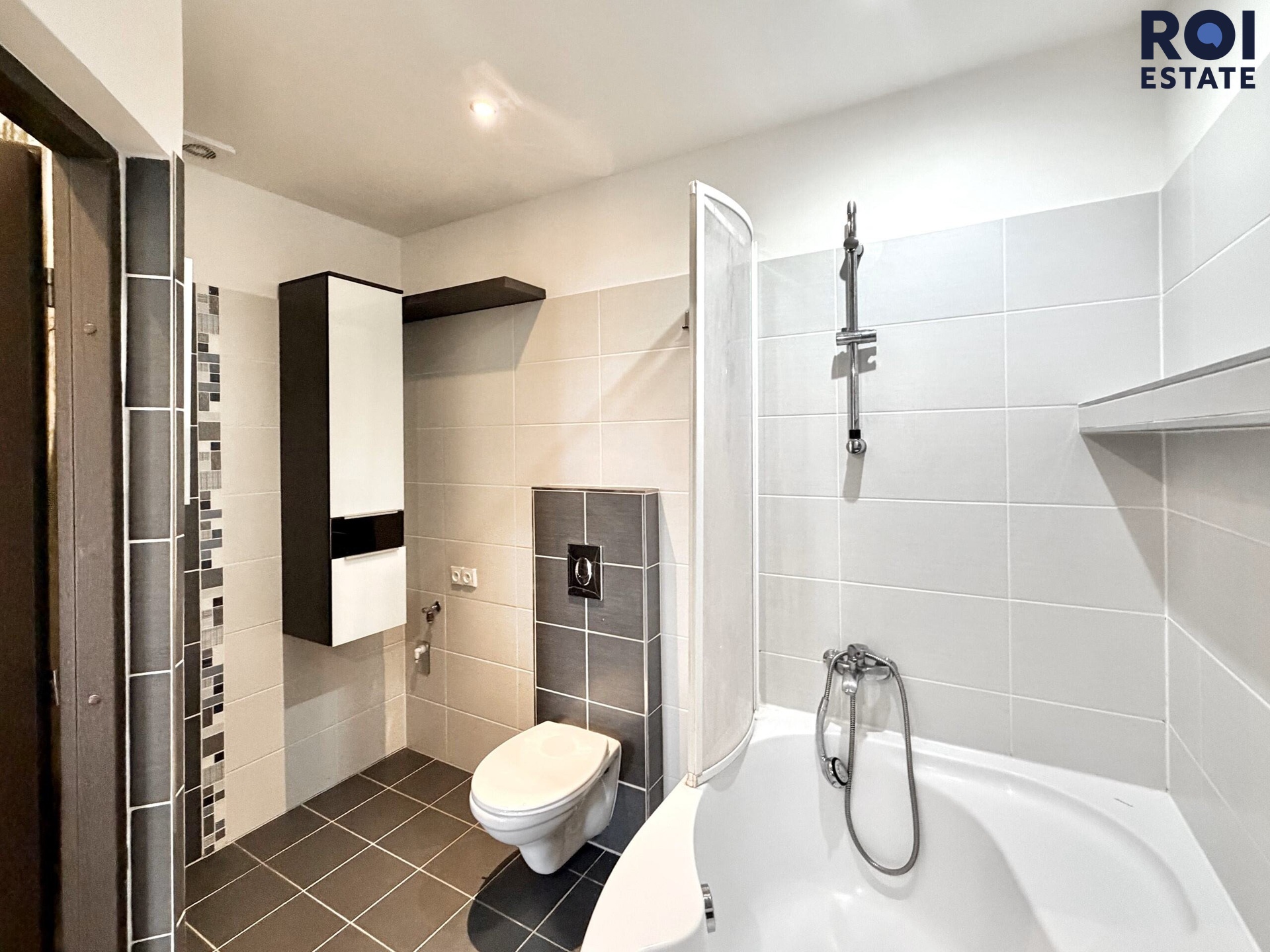 Koupelna (4,6 m²) s rohovou vanou, sprchovým koutem, umyvadlem a Geberitem
