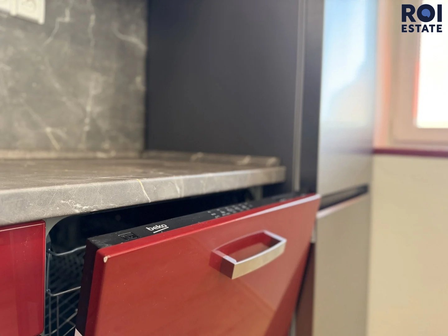 Vysoký standard včetně moderních spotřebičů (myčka nádobí, horkovzdušná trouba, lednička, mikrovlnná trouba) a smart TV.