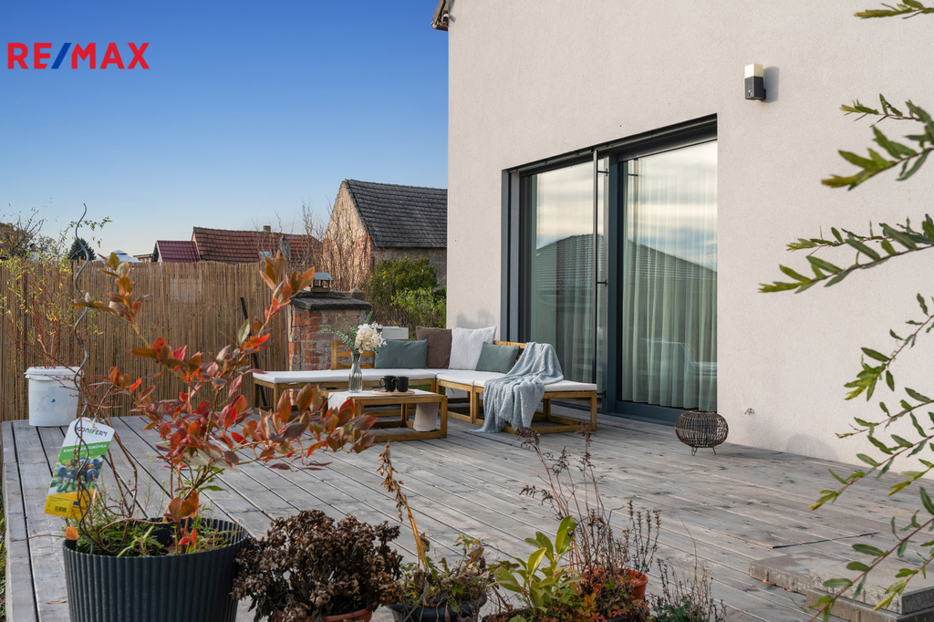Terasa, zahrada, prostor pro děti i posezení – ideální rovnováha mezi soukromím a otevřeností.