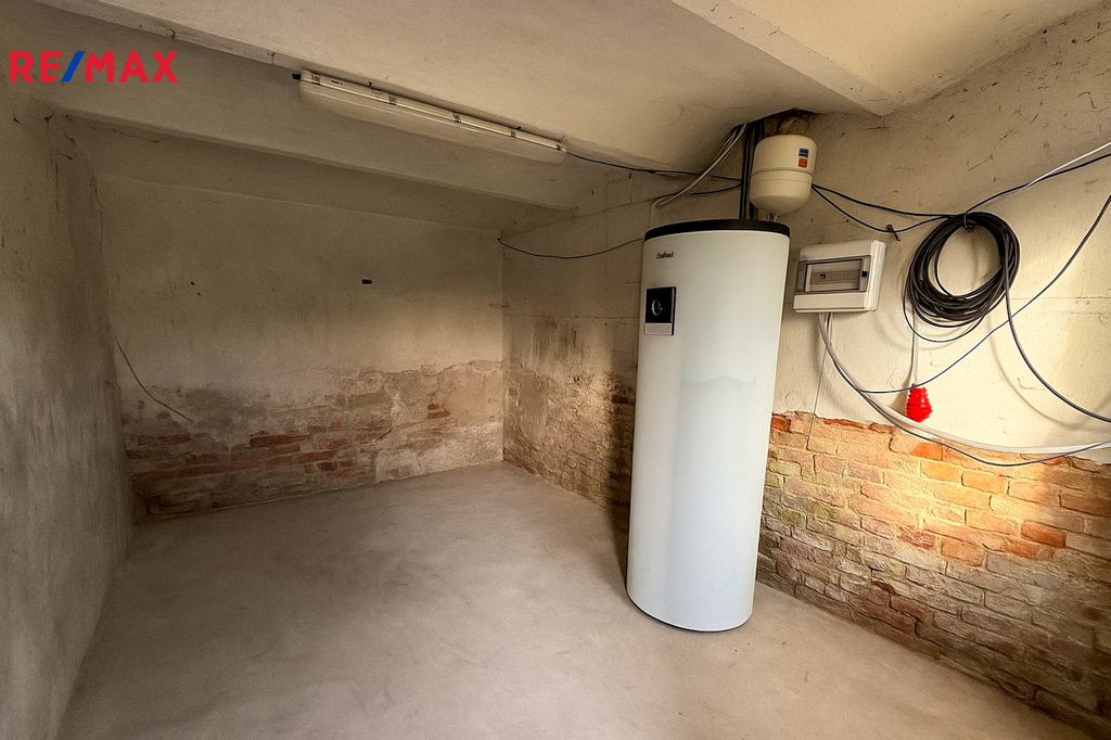 K domu náleží i technické místnosti v suterénu, které lze využít jako dílnu, sklad nebo zázemí pro podnikání.