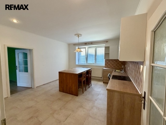 Dominantou bytu je prostorná kuchyně s masivním jídelním stolem a novou kuchyňskou linkou vybavenou moderními spotřebiči. Dále je k dispozici útulný obývací pokoj s krbem a samostatná ložnice.