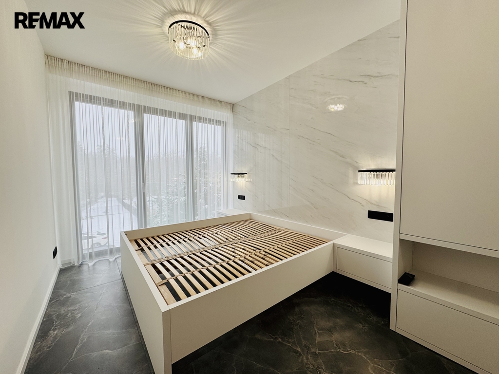 Interiér bytu je proveden ve velmi vysokém standardu a je kompletně zařízen designovým nábytkem na míru, včetně dostatku úložných prostor v každé místnosti. Samozřejmostí je podlahové topení s individuální regulací v každé místnosti, vlastní plynový kondenzační kotel, klimatizace, hliníková okna s izolačními trojskly a venkovními žaluziemi, úsporné LED osvětlení, domácí telefon a bezpečnostní vstupní dveře.