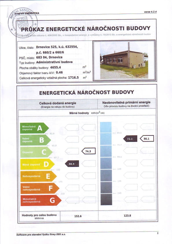 - Energetický ukazatel podle vyhlášky: č. 78/2013 Sb.