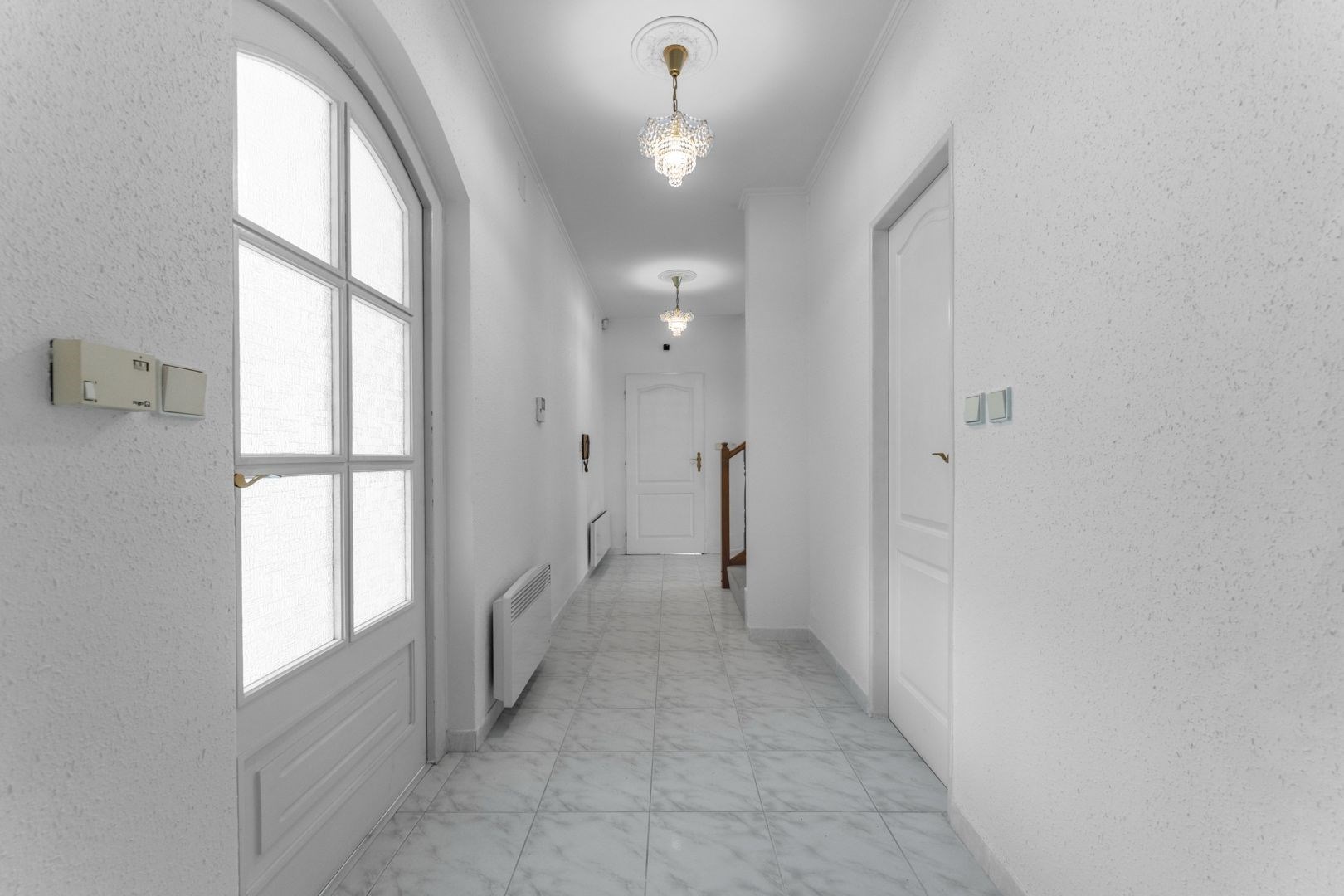 Kuchyň je vybavena vestavnými spotřebiči (trouba, sklokeramická deska, digestoř, myčka). Koupelny obsahují vanu, sprchový kout a dvě umyvadla. Zimní zahrada příjemně propojuje interiér se zahradou.