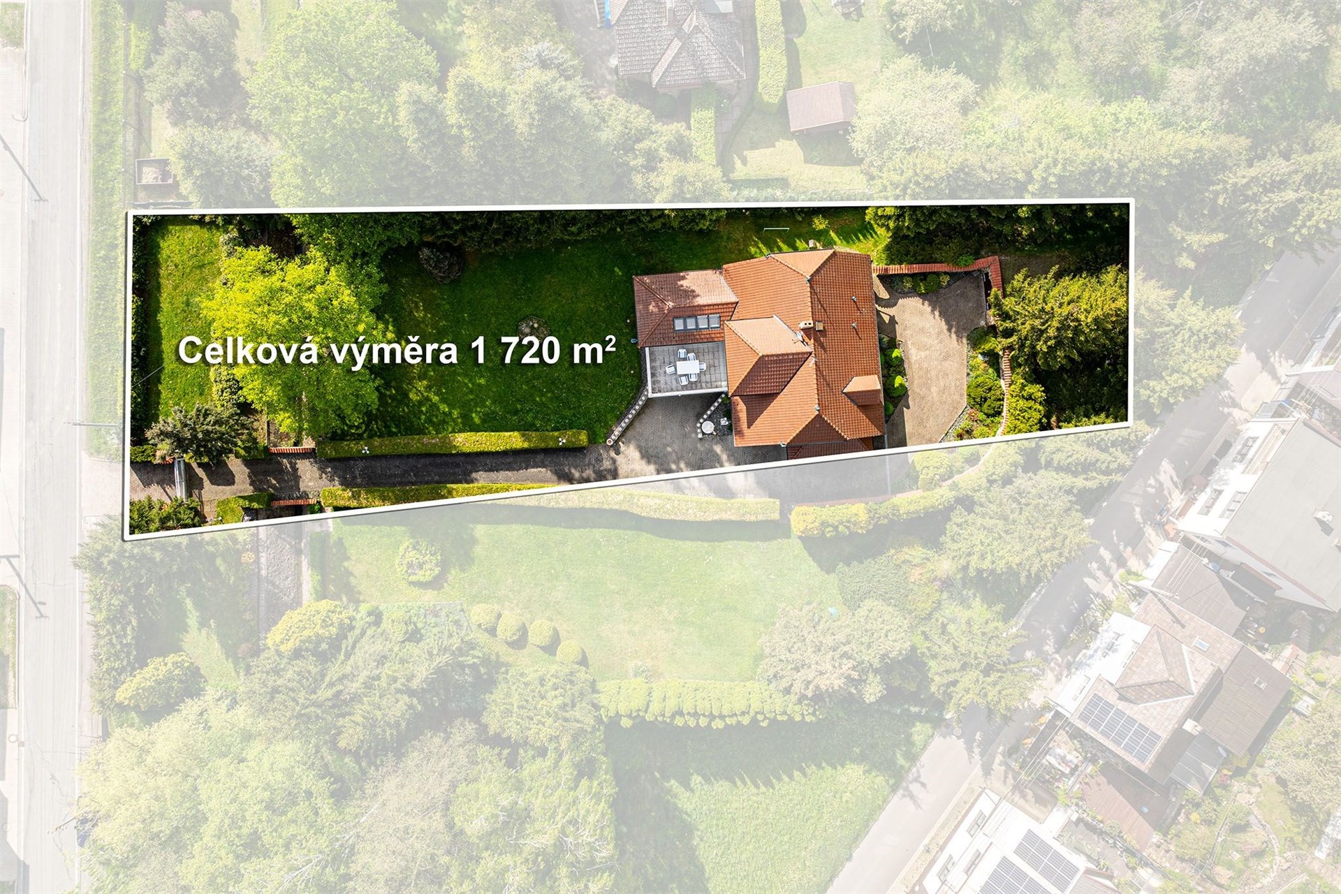 - Plocha parcely: 1720 m²