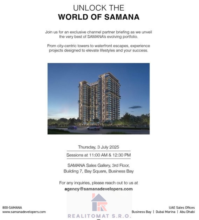 Moje realitní kancelář přímo spolupracuje s dubajským developerem Samana, který patří mezi prověřené, kvalitní a stabilní developery na tamním trhu. Díky tomu je vaše investice v bezpečných rukou — a přesně to při zahraniční investici chcete. Spojení důvěryhodného developera a české realitní kanceláře je ideální cestou, jak efektivně a s jistotou zhodnotit své peníze. Více informací najdete na mých stránkách.