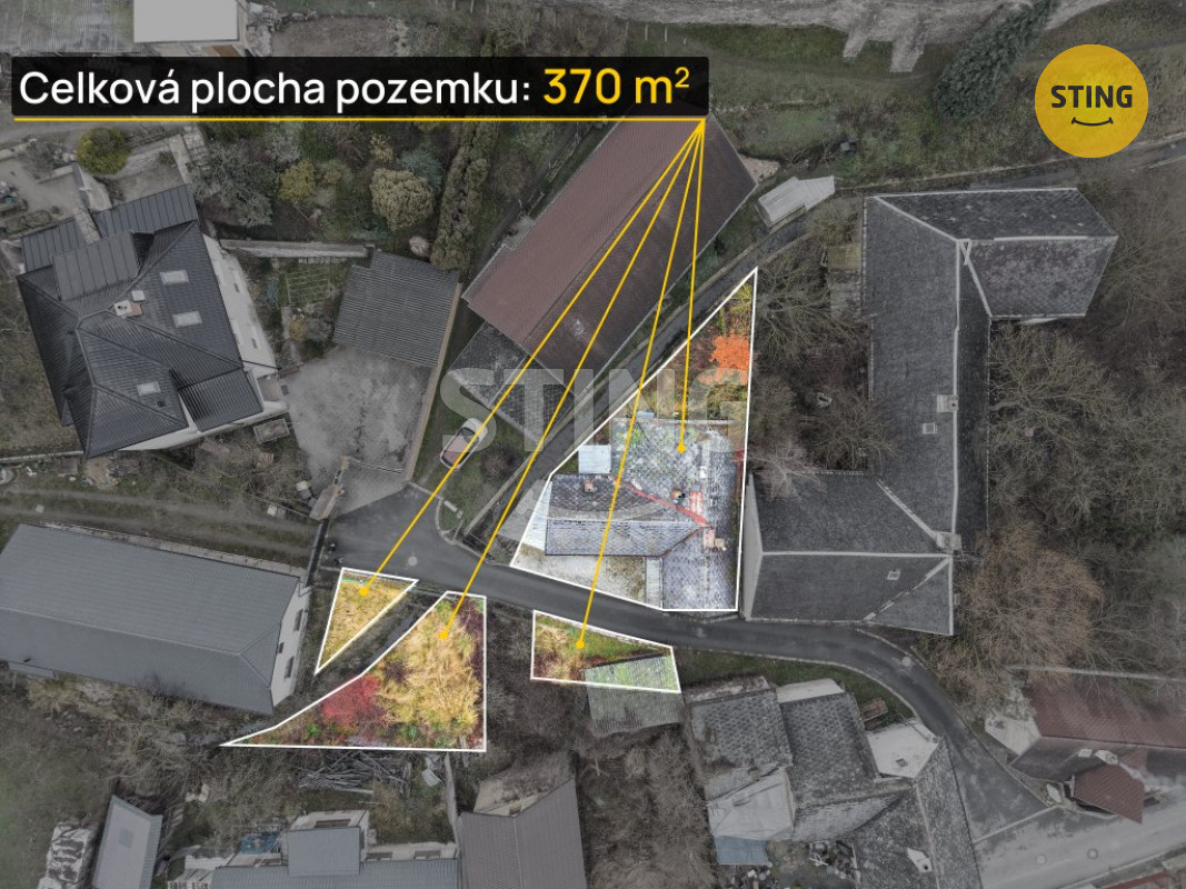 Zastavěná plocha činí 120 m2, celková výměra pozemků je 370 m2 a zahrada má přibližně 170 m2. K budově také přiléhají tři menší plochy, na kterých je možné vybudovat např. terasu, nebo zimní zahradu/skleník.