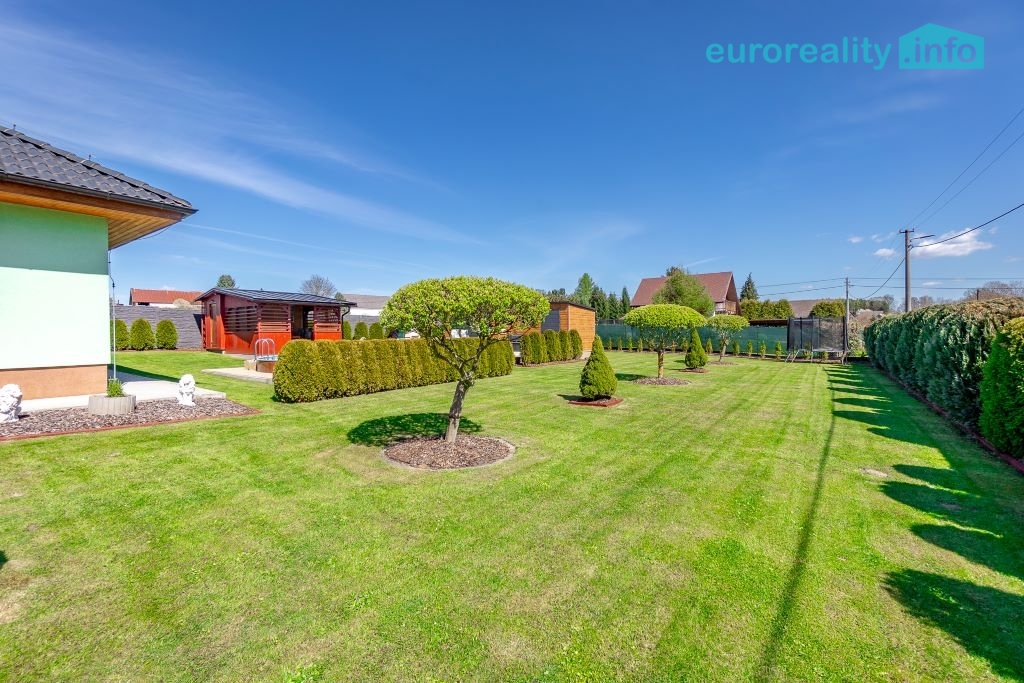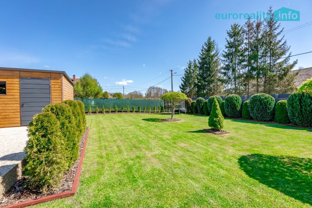 Celková výměra pozemku činí 1 497 m². Pozemek je oplocen kvalitním betonovým plotem, který zajišťuje soukromí. Vjezd na pozemek je řešen ocelovou bránou. Zahrada je ve výborném stavu, pravidelně udržovaná a nabízí příjemné prostředí pro relaxaci i rodinné aktivity. Nachází se zde vzrostlé stromy, okrasné keře, mulčované plochy a chodníky ze zámkové dlažby.