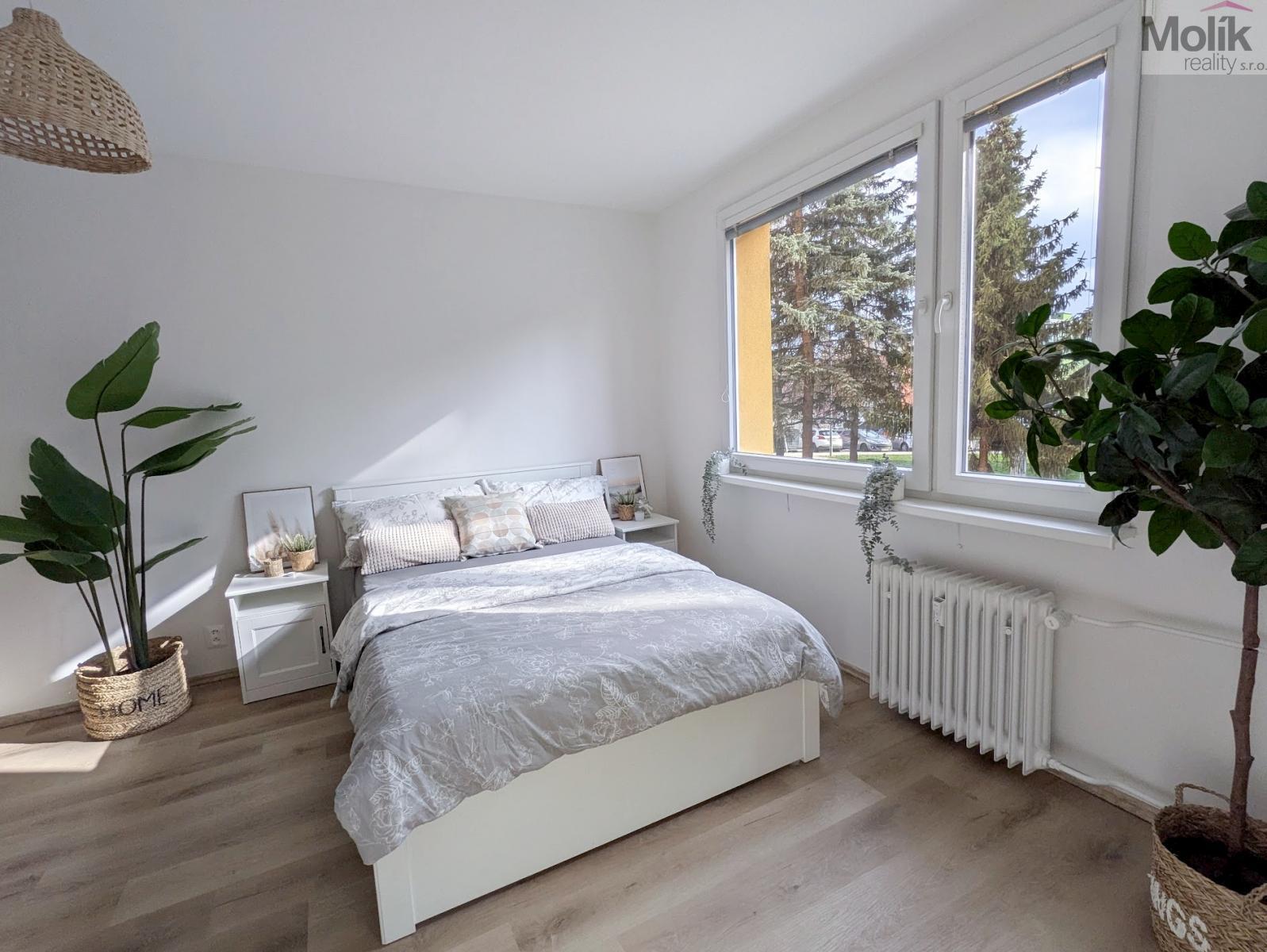 Byt se nachází ve zvýšeném přízemí (1. nadzemním podlaží) domu bez výtahu. Tento měsíc byla dokončena kompletní rekonstrukce, která zahrnovala výměnu rozvodů elektřiny a odpadů, renovaci zdí, stropů i podlahových krytin (vinyl), instalaci kuchyňské linky na míru (se zabudovanou myčkou, indukční varnou deskou ,horkovzdušnou troubou a výsuvnou digestoří), nové dveře včetně obložek a rekonstrukci koupelny a WC. Byt je velmi krásný a světlý, nabízí hezký výhled na okolní zeleň. Díky své poloze poskytuje příjemnou a klidnou atmosféru. V docházkové vzdálenosti 5-10 minut se nachází Zámecká zahrada, sportovní areál Bažantnice, rybník Leontýna i centrum města.