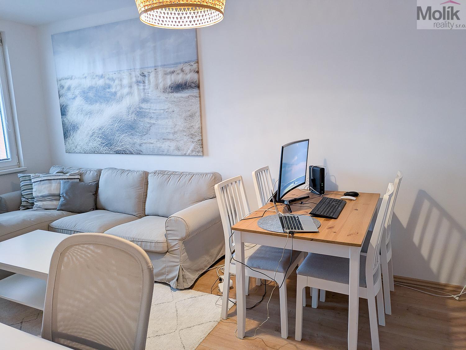 Nábytek na fotografiích je součástí pronájmu (kromě TV a PC). Byt bude volný dle domluvy a náleží k němu komora na patře a sklepní kóje.
