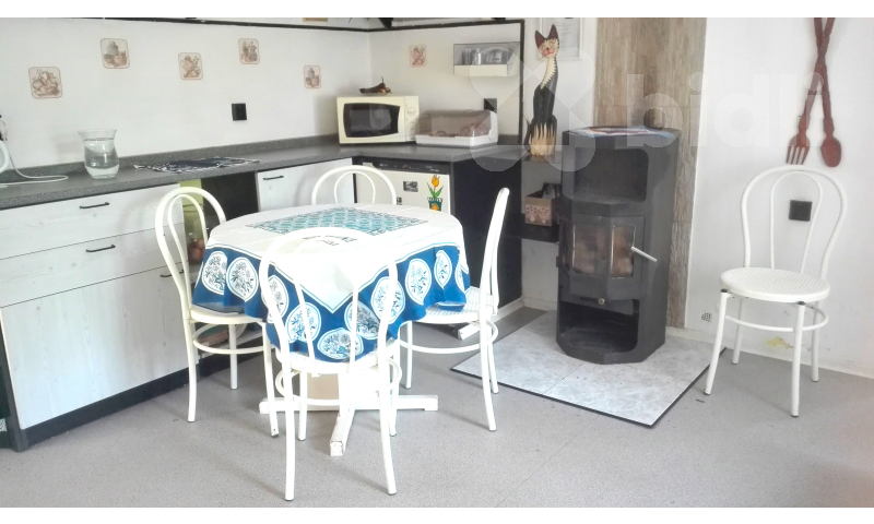 Vytápění zajišťují krbová kamna, při větších mrazech pomohou elektrické přímotopy.