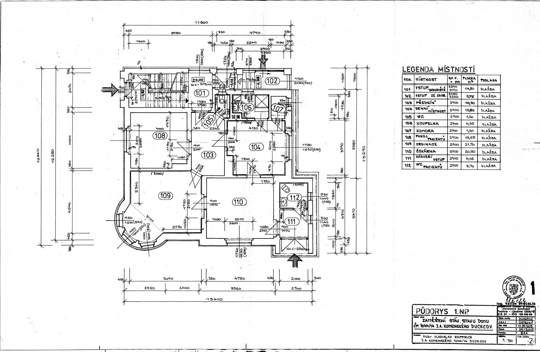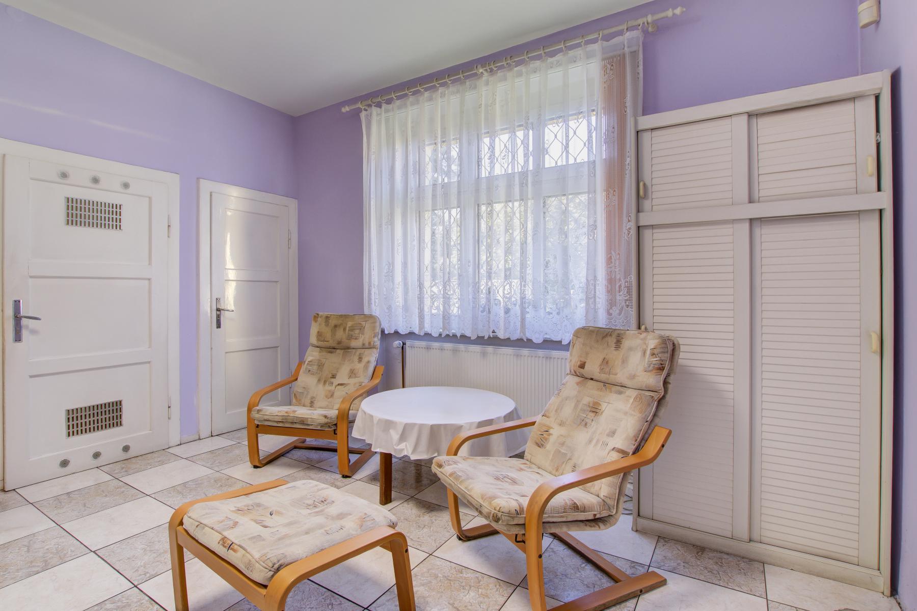 - přízemí (119,7 m2): 4 místnosti, 2x WC, koupelna, chodba, komora, zimní zahrada. Dlouhodobě sloužilo jako ordinace se samostatným vstupem (možnost ponechat vybavení).