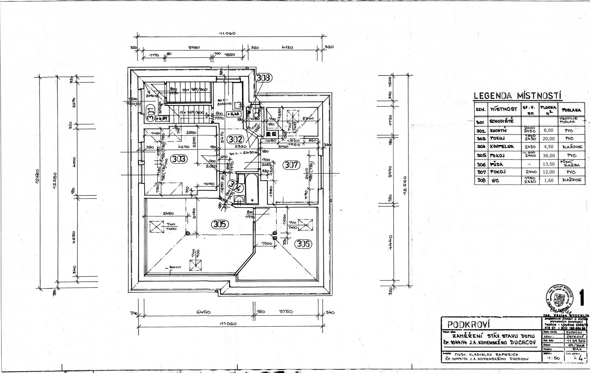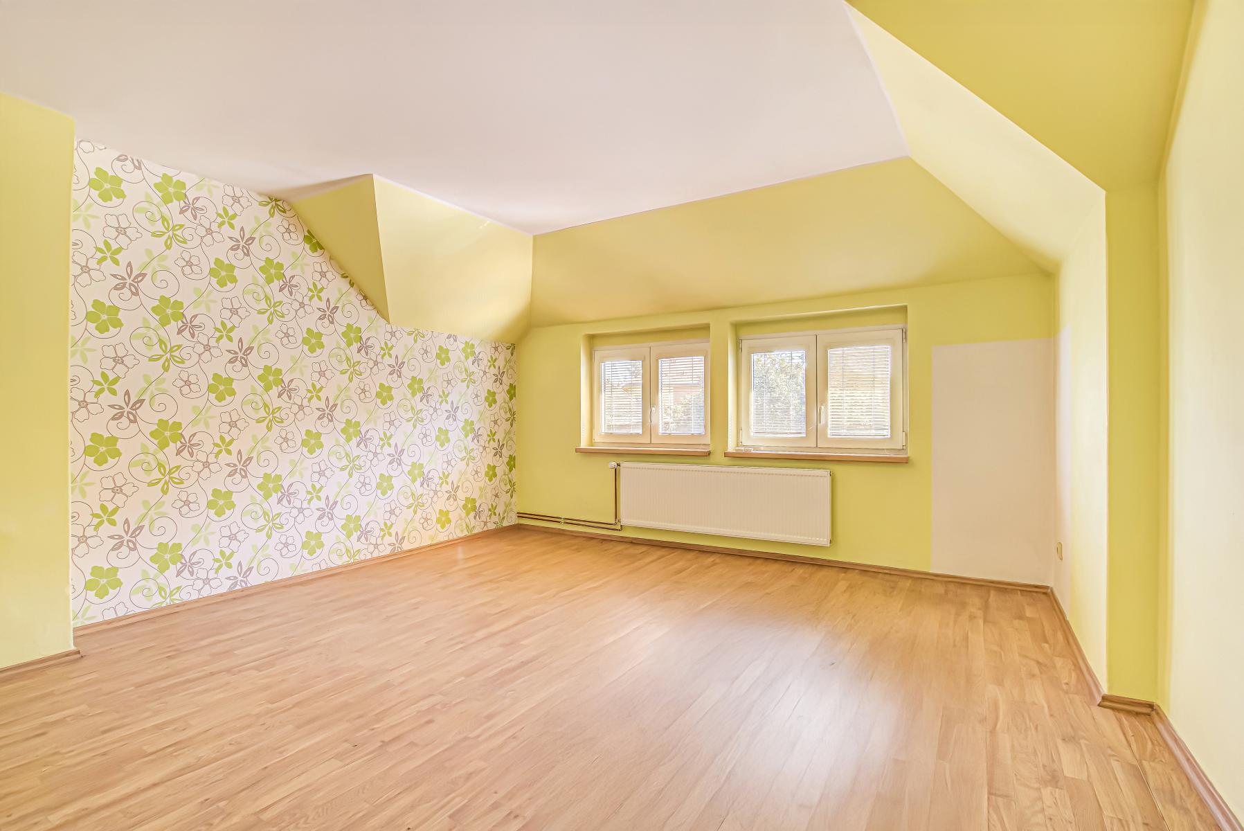 - podkroví (95,6 m2): 4 místnosti, kuchyňský kout v chodbě, koupelna, WC další samostatná bytová jednotka.